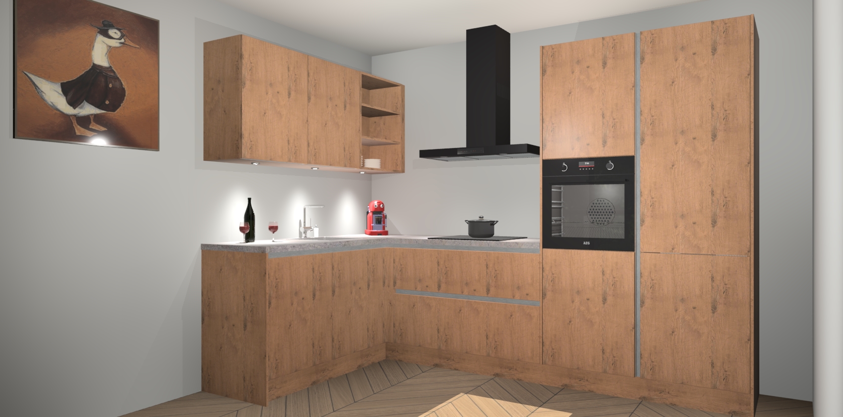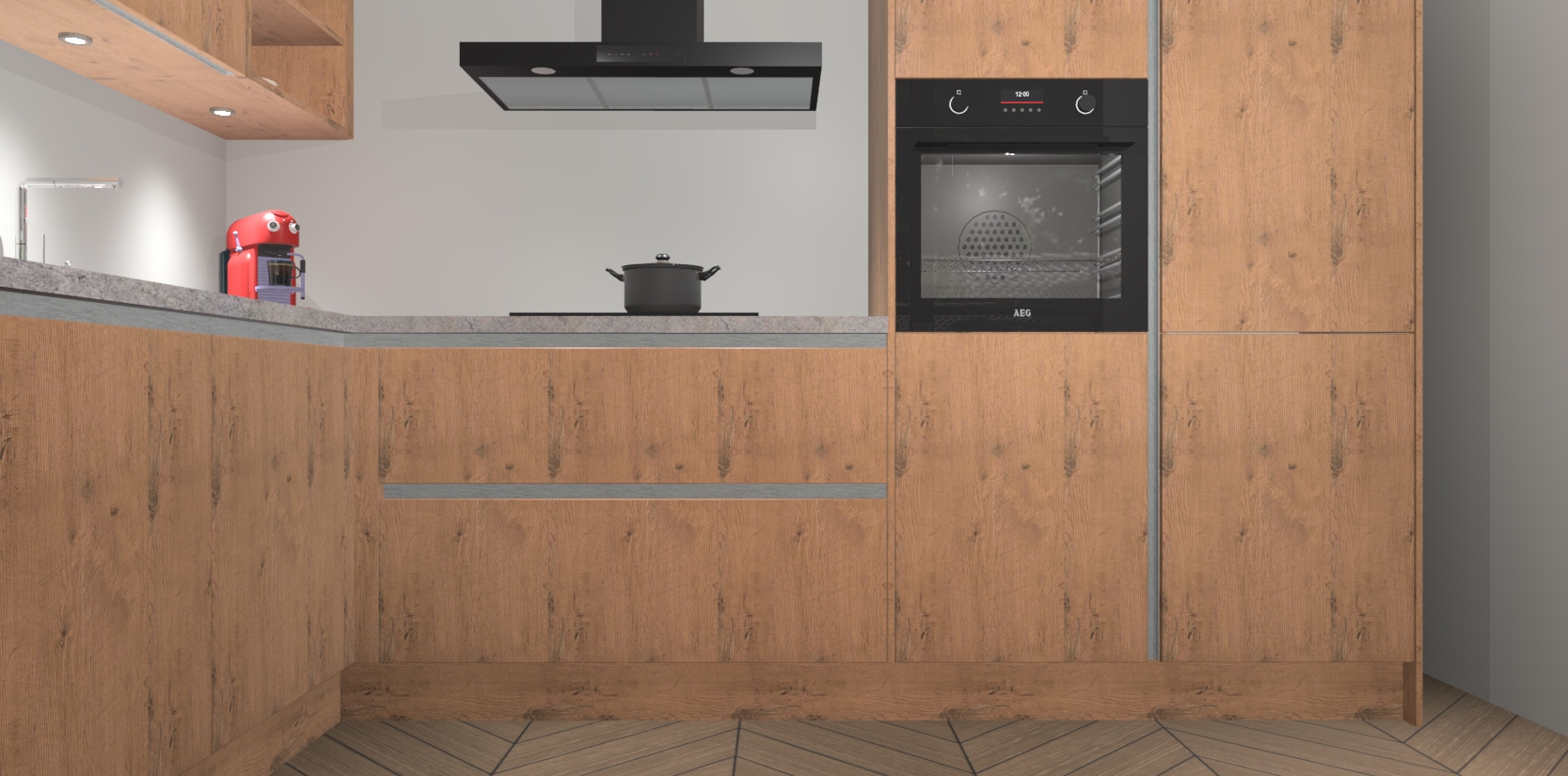 De Astoria Eiken greeploze keuken Cognac is een adembenemend ontwerp met een modern en tijdloos uiterlijk. Deze luxe keuken straalt echt aristocratisch uit, waardoor uw koken plezieriger zal worden! Het prachtige design begint bij de hoekkeuken, wat perfect past bij elk type interieur. Bovendien bevat deze hoogwaardige set vijf inbouwapparaten - van oven tot koelkast - die via bestelling naar AEG geüpgraded kunnen worden!
