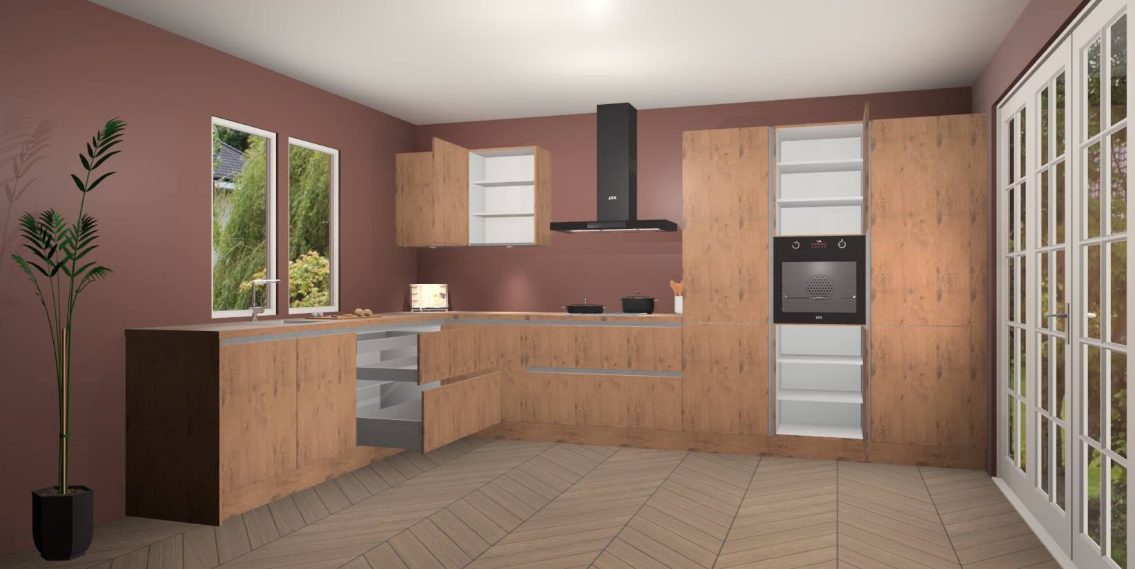 Heeft u nog apparatuur nodig? Geen probleem: de Astoria Eiken greeploze keuken Debrecen bevat vijf ingebouwde apparaten - een oven, inductiekookplaat, afzuigkap, vaatwasser en koelkast - die gemakkelijk kunnen worden bijgewerkt naar AEG na bestelling. En als dat nog niet genoeg is; onze kasten worden pre-geassembleerd geleverd en zijn verkrijgbaar tegen een vastgeroeste lage prijs! U hoeft nooit meer te zoeken naar goede kwaliteit en service want onze producten hebben echt Duitse kwaliteit.