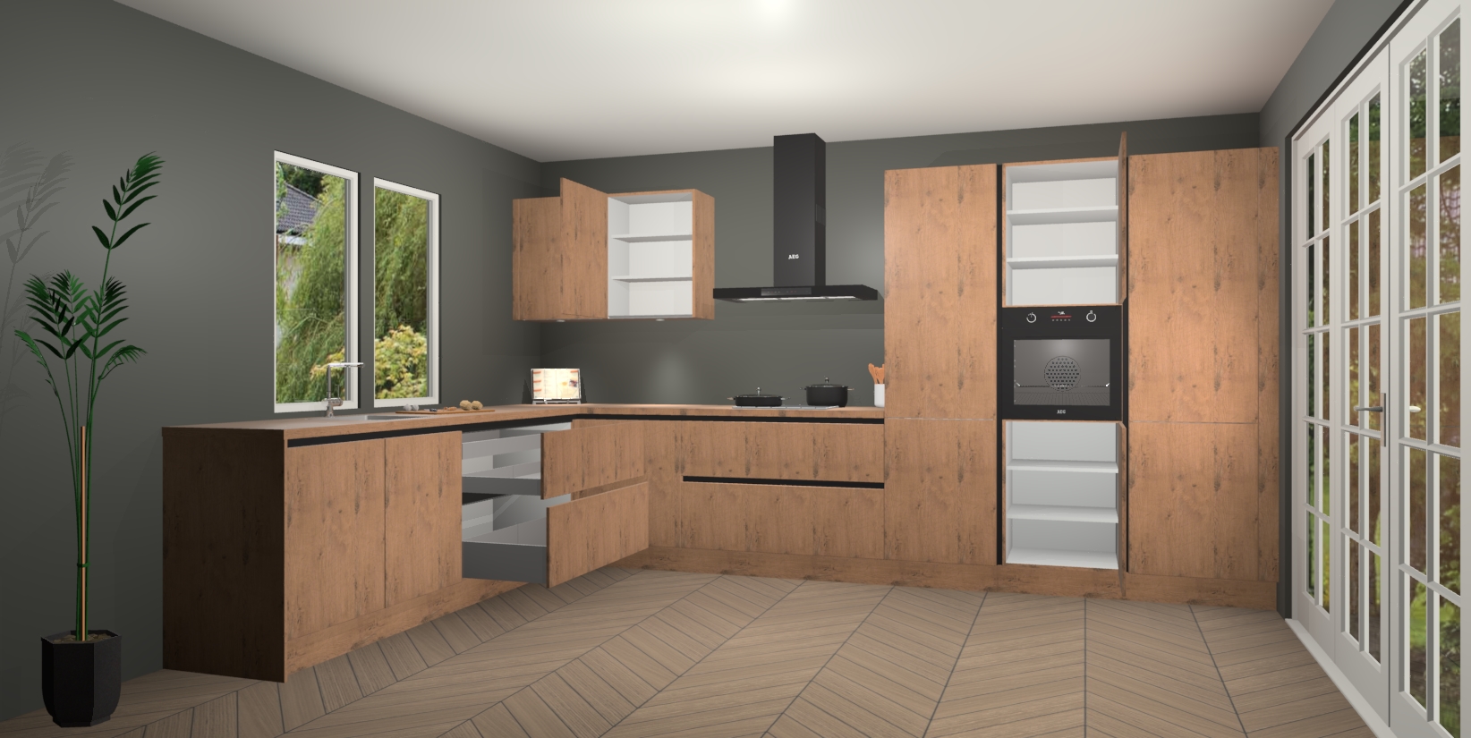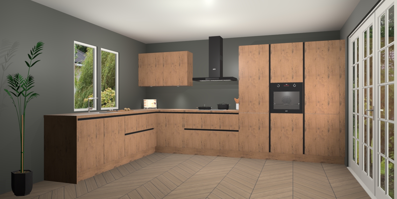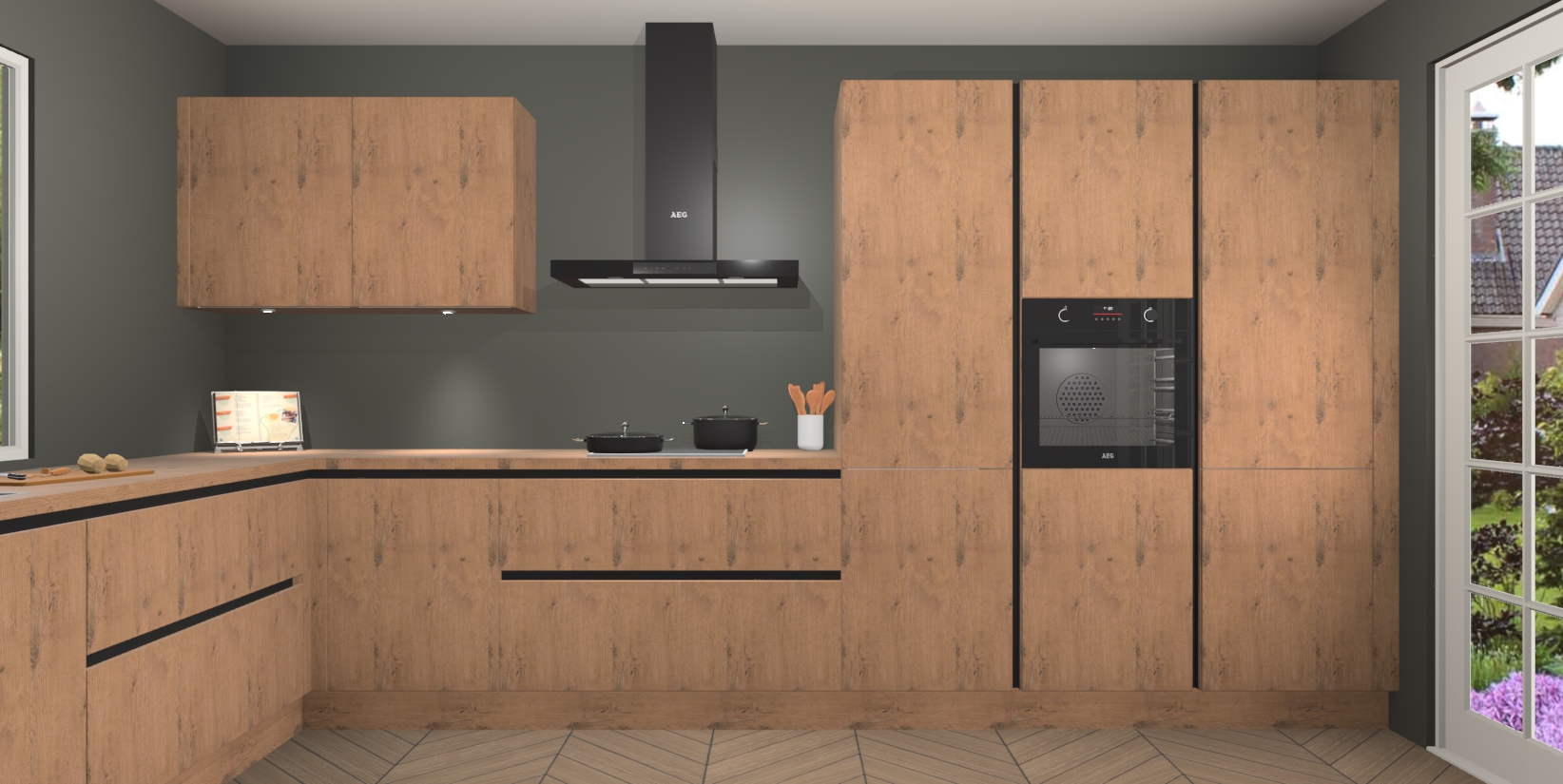 Heeft u nog apparatuur nodig? Geen probleem: de Astoria Eiken greeploze keuken Debrecen bevat vijf ingebouwde apparaten - een oven, inductiekookplaat, afzuigkap, vaatwasser en koelkast - die gemakkelijk kunnen worden bijgewerkt naar AEG na bestelling. En als dat nog niet genoeg is; onze kasten worden pre-geassembleerd geleverd en zijn verkrijgbaar tegen een vastgeroeste lage prijs! U hoeft nooit meer te zoeken naar goede kwaliteit en service want onze producten hebben echt Duitse kwaliteit.