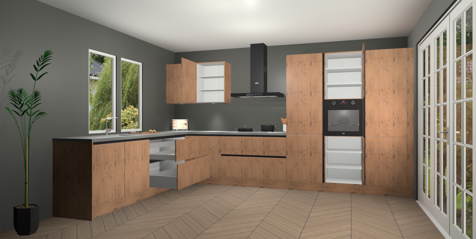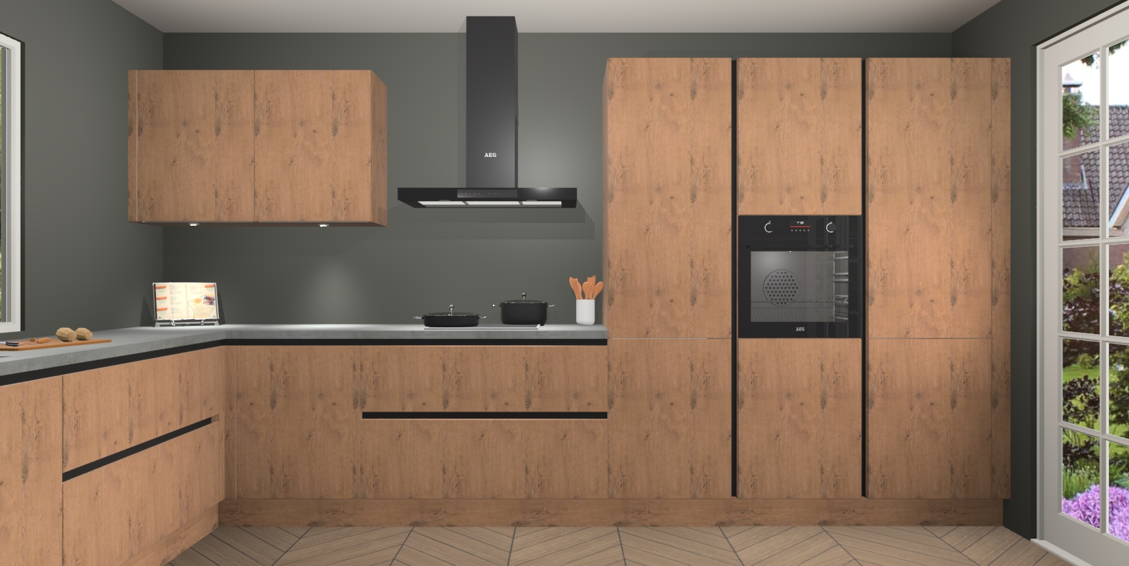 Heeft u nog apparatuur nodig? Geen probleem: de Astoria Eiken greeploze keuken Debrecen bevat vijf ingebouwde apparaten - een oven, inductiekookplaat, afzuigkap, vaatwasser en koelkast - die gemakkelijk kunnen worden bijgewerkt naar AEG na bestelling. En als dat nog niet genoeg is; onze kasten worden pre-geassembleerd geleverd en zijn verkrijgbaar tegen een vastgeroeste lage prijs! U hoeft nooit meer te zoeken naar goede kwaliteit en service want onze producten hebben echt Duitse kwaliteit.