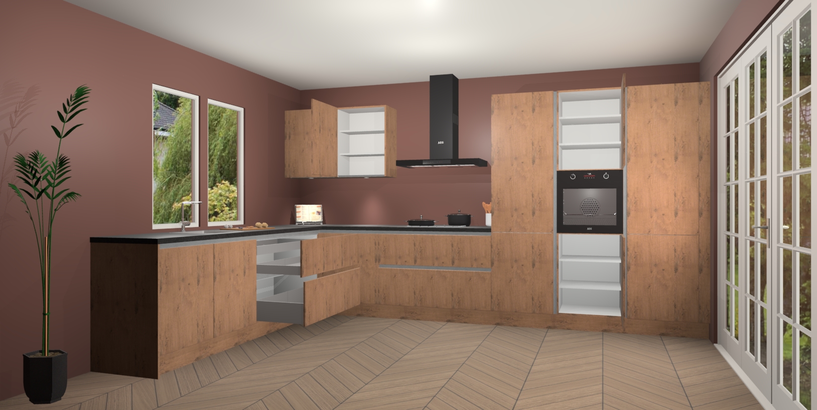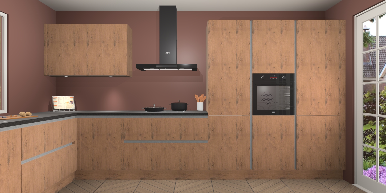 Heeft u nog apparatuur nodig? Geen probleem: de Astoria Eiken greeploze keuken Debrecen bevat vijf ingebouwde apparaten - een oven, inductiekookplaat, afzuigkap, vaatwasser en koelkast - die gemakkelijk kunnen worden bijgewerkt naar AEG na bestelling. En als dat nog niet genoeg is; onze kasten worden pre-geassembleerd geleverd en zijn verkrijgbaar tegen een vastgeroeste lage prijs! U hoeft nooit meer te zoeken naar goede kwaliteit en service want onze producten hebben echt Duitse kwaliteit.