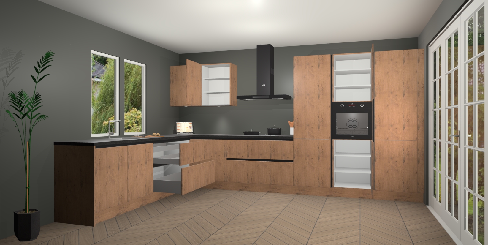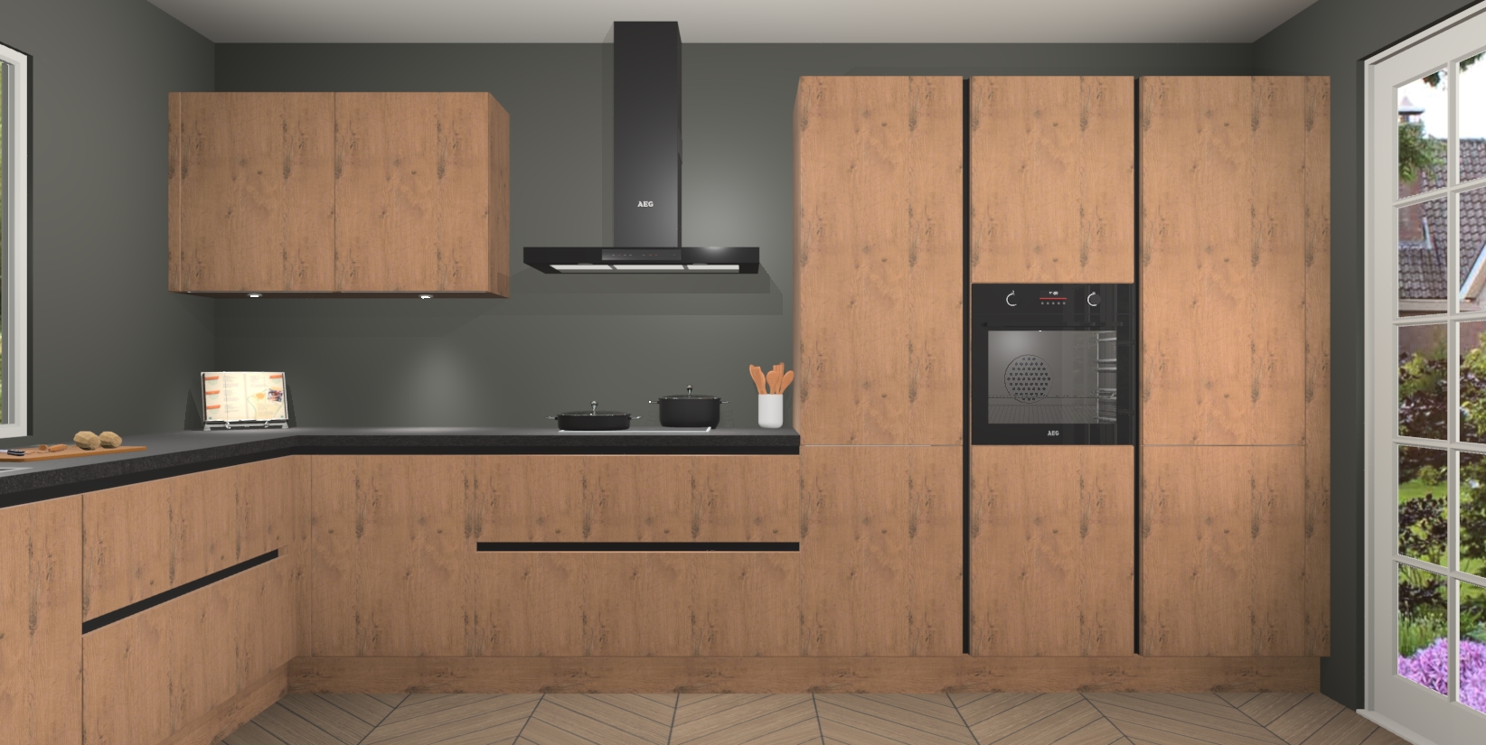 Heeft u nog apparatuur nodig? Geen probleem: de Astoria Eiken greeploze keuken Debrecen bevat vijf ingebouwde apparaten - een oven, inductiekookplaat, afzuigkap, vaatwasser en koelkast - die gemakkelijk kunnen worden bijgewerkt naar AEG na bestelling. En als dat nog niet genoeg is; onze kasten worden pre-geassembleerd geleverd en zijn verkrijgbaar tegen een vastgeroeste lage prijs! U hoeft nooit meer te zoeken naar goede kwaliteit en service want onze producten hebben echt Duitse kwaliteit.