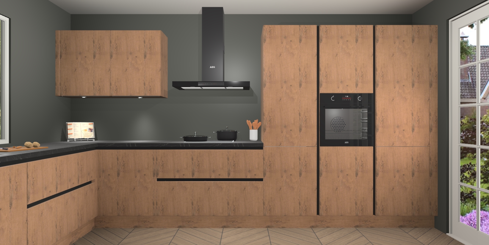 Heeft u nog apparatuur nodig? Geen probleem: de Astoria Eiken greeploze keuken Debrecen bevat vijf ingebouwde apparaten - een oven, inductiekookplaat, afzuigkap, vaatwasser en koelkast - die gemakkelijk kunnen worden bijgewerkt naar AEG na bestelling. En als dat nog niet genoeg is; onze kasten worden pre-geassembleerd geleverd en zijn verkrijgbaar tegen een vastgeroeste lage prijs! U hoeft nooit meer te zoeken naar goede kwaliteit en service want onze producten hebben echt Duitse kwaliteit.