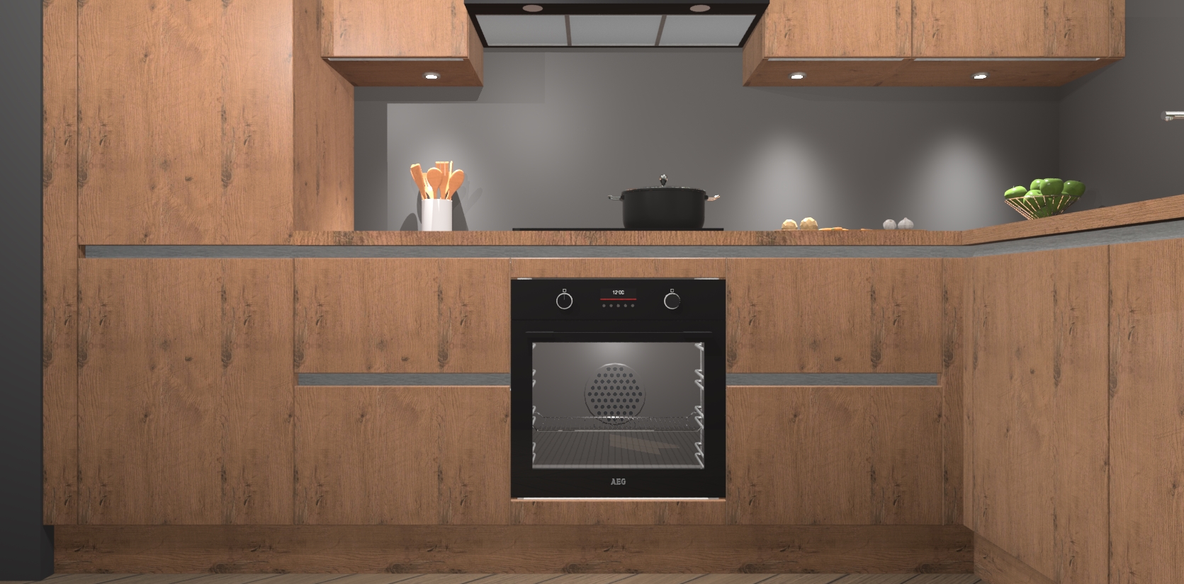 De Astoria Eiken greeploze keuken Geneve is uitgerust met 5 inbouwapparaten - een oven, inductiekookplaat, afzuigkap, vaatwasser en koelkast - voor al uw kook- en bewaarbehoeftes. U kunt deze apparaten desgewenst eenvoudig upgraden naar AEG of de oven omruilen voor een combimagnetron na het plaatsen van uw bestelling. En met de soft close deuren, voldoende opbergruimte en kasten die voorgemonteerd worden geleverd, bent u in een mum van tijd klaar om heerlijke maaltijden te bereiden!