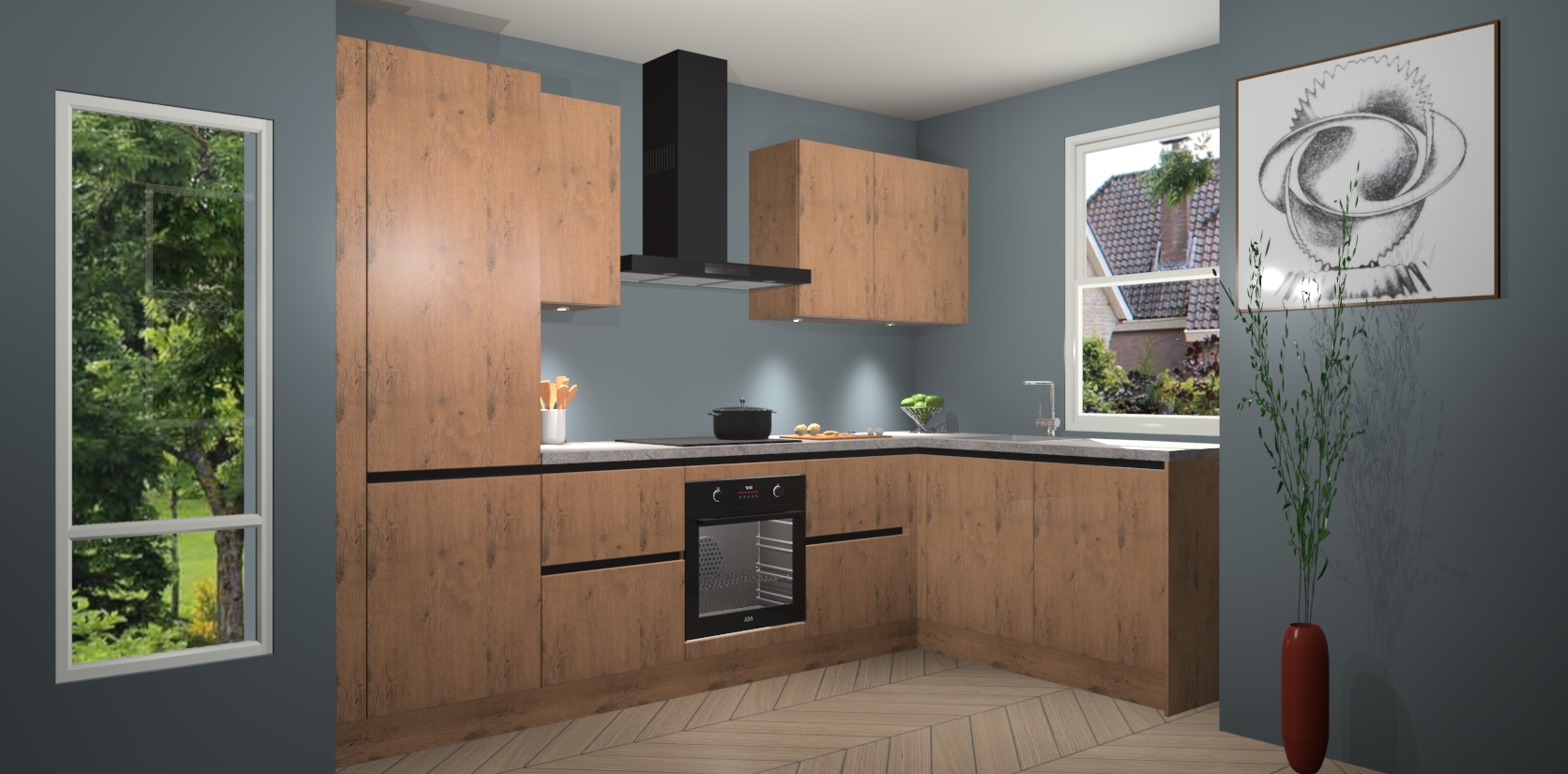 De Astoria Eiken greeploze keuken Geneve is uitgerust met 5 inbouwapparaten - een oven, inductiekookplaat, afzuigkap, vaatwasser en koelkast - voor al uw kook- en bewaarbehoeftes. U kunt deze apparaten desgewenst eenvoudig upgraden naar AEG of de oven omruilen voor een combimagnetron na het plaatsen van uw bestelling. En met de soft close deuren, voldoende opbergruimte en kasten die voorgemonteerd worden geleverd, bent u in een mum van tijd klaar om heerlijke maaltijden te bereiden!