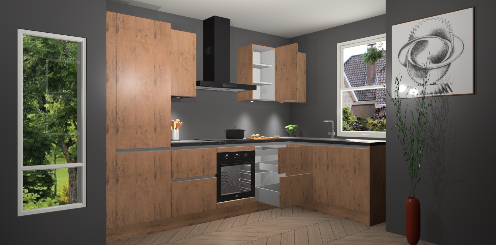Bent u op zoek naar een moderne en tijdloze keuken die schoonheid in uw huis brengt? Zoek dan niet verder dan de Astoria Eiken greeploze keuken Geneve - de perfecte keuken voor al uw wensen. Deze hoekkeuken biedt de hoogste Duitse kwaliteit voor een vaste lage prijs en is zeker een blikvanger in uw huis!