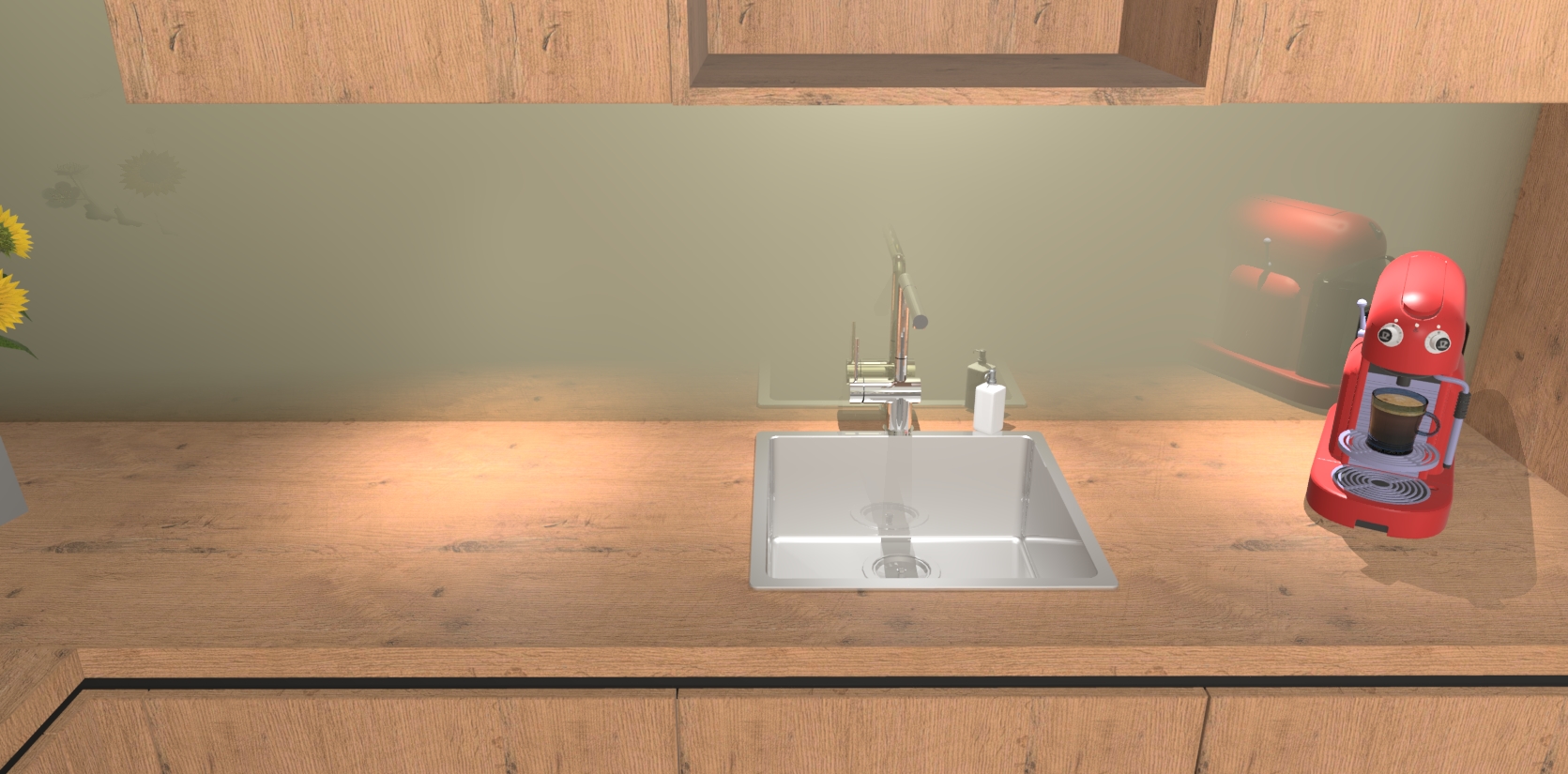 - De spoelbak is nog niet in gevreesd. Dit dient tijdens het werk gedaan te worden