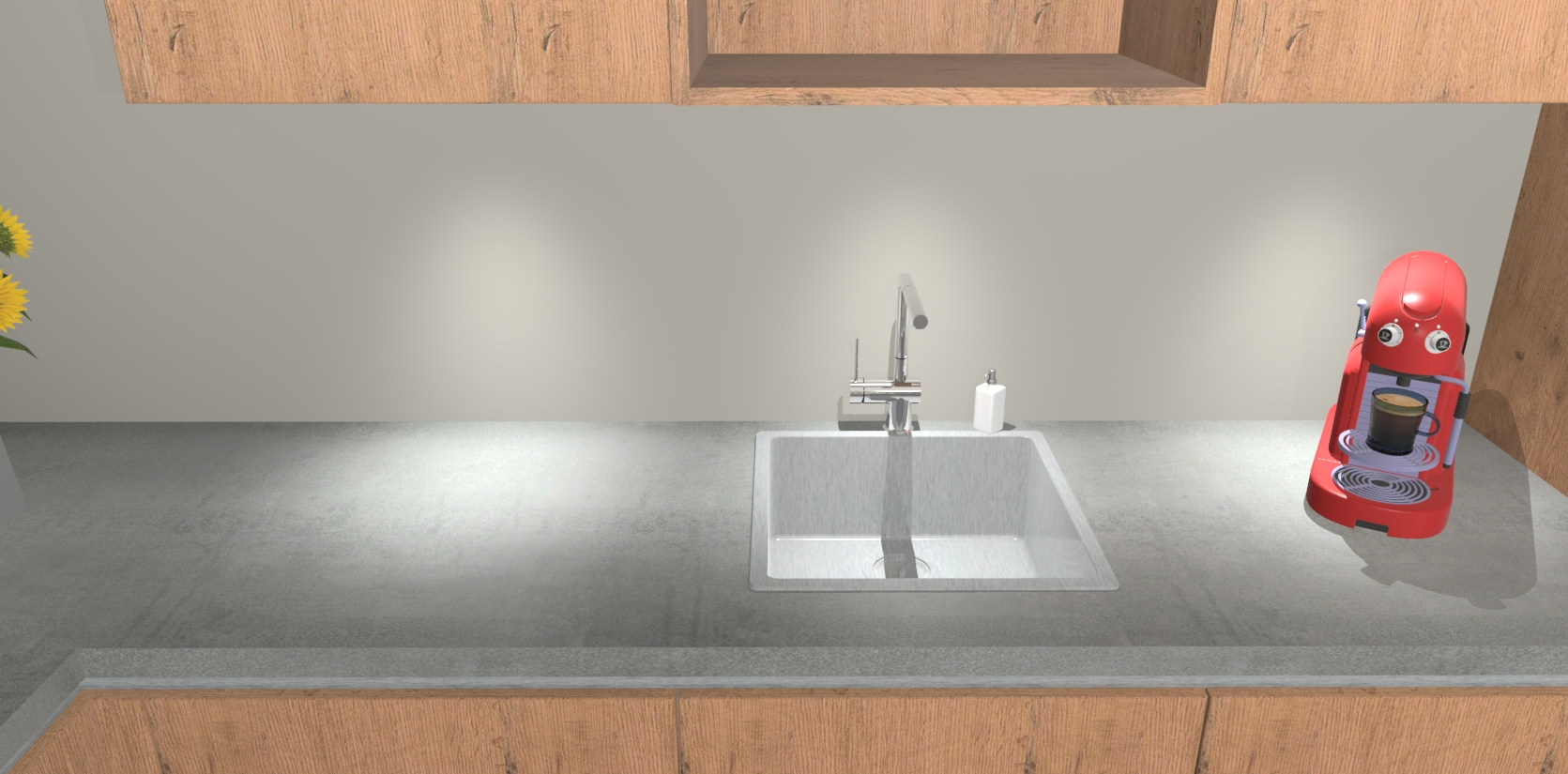 - De spoelbak is nog niet in gevreesd. Dit dient tijdens het werk gedaan te worden