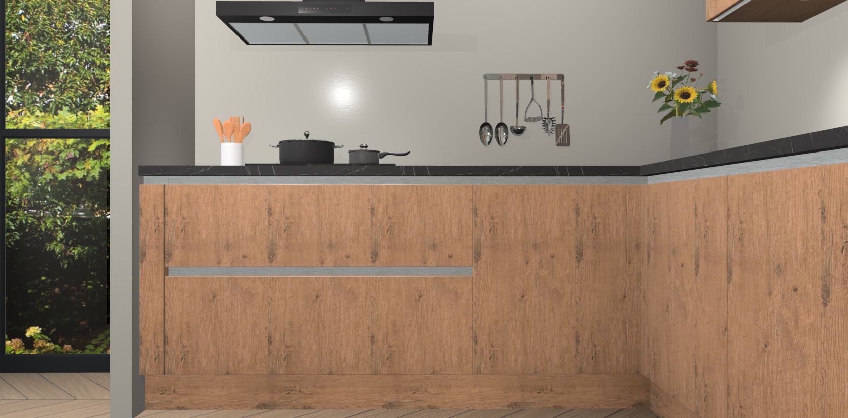 Welkom in de wereld van moderne elegantie! De Astoria eiken greeploze keuken Gotenburg zal in elk huis een sfeer van warmte en verfijning oproepen. Met zijn houtlook, strakke lijnen en greeploze design straalt deze keuken luxe uit terwijl hij toch functioneel is. Bovendien zult u blij zijn te weten dat elke kast voor gemonteerd wordt geleverd en dat de levering al binnen 7 weken klaar is. Ervaar Duitse kwaliteit als nooit tevoren met de Astoria eiken greeploze keuken Gotenburg. Met veel opbergruimte, elegante soft-close deuren voor extra gemak, en dat alles voor een vaste lagere prijs dan u zou verwachten.
