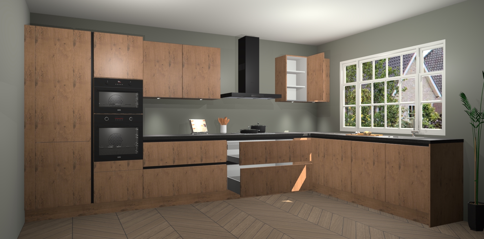 Heeft u nog apparatuur nodig? Geen probleem: de astoria eiken greeploze keuken Graz bevat vijf ingebouwde apparaten - een oven, inductiekookplaat, afzuigkap, vaatwasser en koelkast - die gemakkelijk kunnen worden bijgewerkt naar AEG na bestelling. En als dat nog niet genoeg is; onze kasten worden pre-geassembleerd geleverd en zijn verkrijgbaar tegen een vastgeroeste lage prijs! U hoeft nooit meer te zoeken naar goede kwaliteit en service want onze producten hebben echt Duitse kwaliteit.