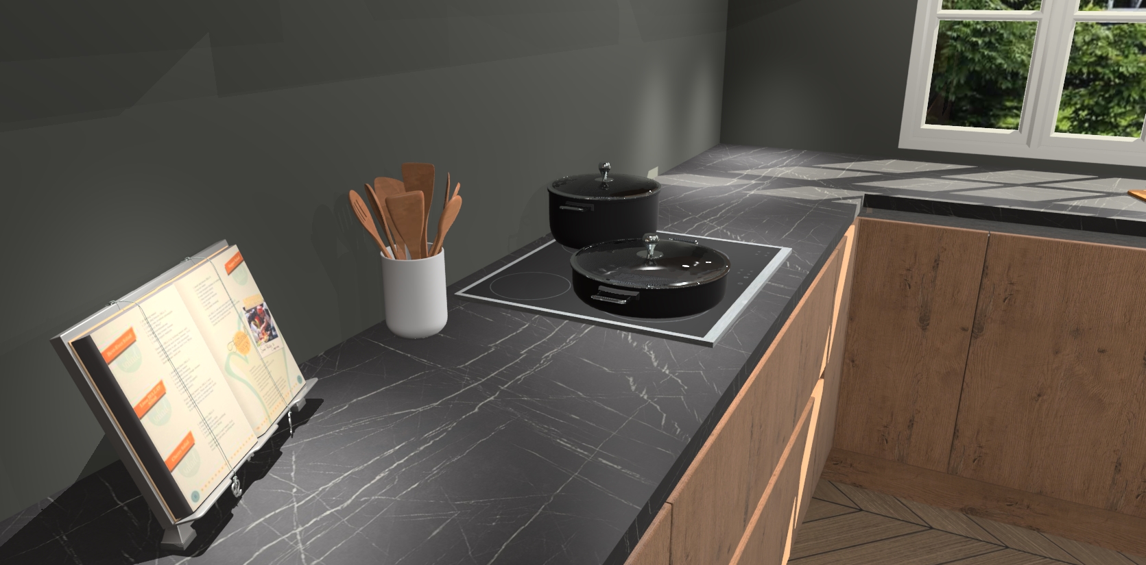 - Bij een hoekwerkblad zijn de hoeken in gevreesd en op maat gemaakt