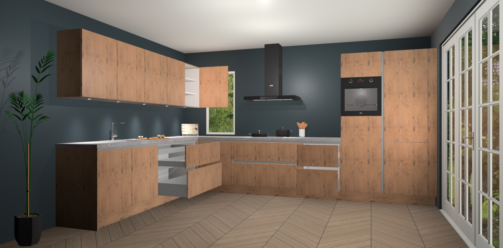 Heeft u nog apparatuur nodig? Geen probleem: de astoria eiken greeploze keuken Harare bevat vijf ingebouwde apparaten - een oven, inductiekookplaat, afzuigkap, vaatwasser en koelkast - die gemakkelijk kunnen worden bijgewerkt naar AEG na bestelling. En als dat nog niet genoeg is; onze kasten worden pre-geassembleerd geleverd en zijn verkrijgbaar tegen een vastgeroeste lage prijs! U hoeft nooit meer te zoeken naar goede kwaliteit en service want onze producten hebben echt Duitse kwaliteit.