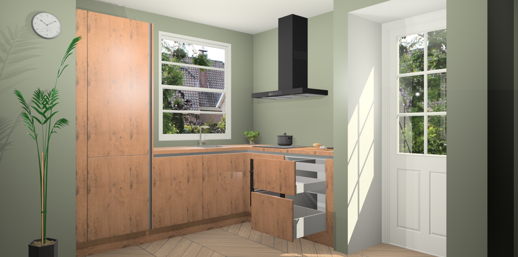Wilt u een echte aanwinst voor uw keuken, maar bent u op zoek naar iets specialers dan de standaardkeukens? Kies dan voor de Astoria Eiken greeploze keuken Harbin! Dit prachtige hoekkeukenontwerp geeft u alle ruimte om optimaal te genieten van heerlijk koken. Het uitmuntende afwerkingsniveau, de fraaie houtstructuur en de sfeervolle zwarte grepen maken van de Astoria Eiken greeploze keuken Harbin de perfecte keuze voor zowel enthousiaste thuiskoks als design-minded interieurliefhebbers.