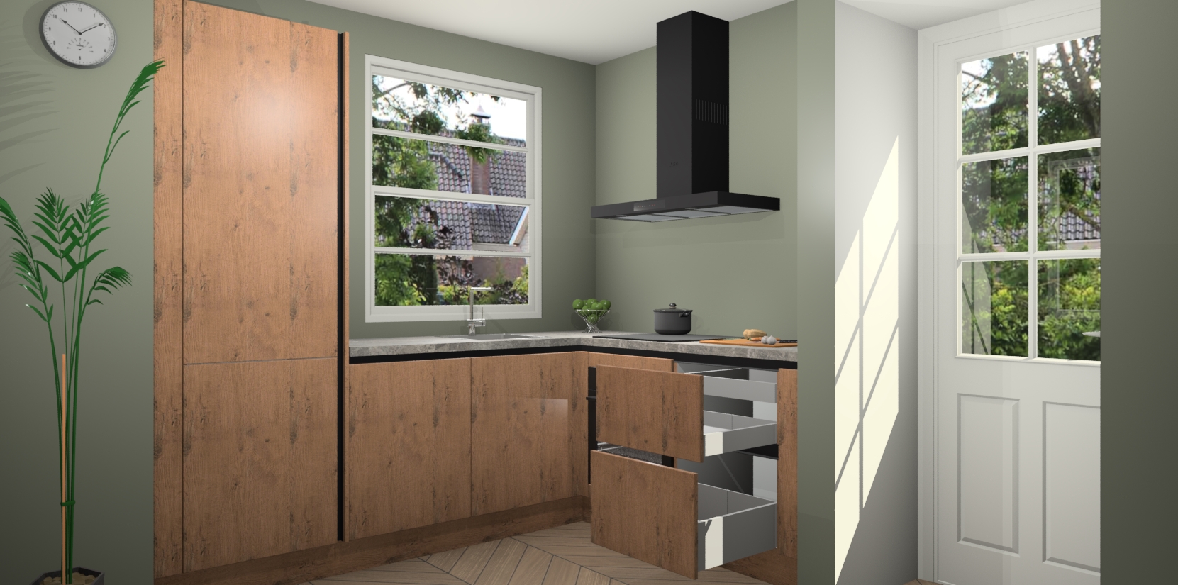 Wilt u een echte aanwinst voor uw keuken, maar bent u op zoek naar iets specialers dan de standaardkeukens? Kies dan voor de Astoria Eiken greeploze keuken Harbin! Dit prachtige hoekkeukenontwerp geeft u alle ruimte om optimaal te genieten van heerlijk koken. Het uitmuntende afwerkingsniveau, de fraaie houtstructuur en de sfeervolle zwarte grepen maken van de Astoria Eiken greeploze keuken Harbin de perfecte keuze voor zowel enthousiaste thuiskoks als design-minded interieurliefhebbers.