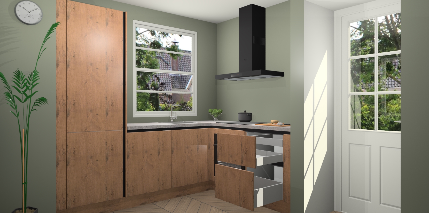 Wilt u een echte aanwinst voor uw keuken, maar bent u op zoek naar iets specialers dan de standaardkeukens? Kies dan voor de Astoria Eiken greeploze keuken Harbin! Dit prachtige hoekkeukenontwerp geeft u alle ruimte om optimaal te genieten van heerlijk koken. Het uitmuntende afwerkingsniveau, de fraaie houtstructuur en de sfeervolle zwarte grepen maken van de Astoria Eiken greeploze keuken Harbin de perfecte keuze voor zowel enthousiaste thuiskoks als design-minded interieurliefhebbers.
