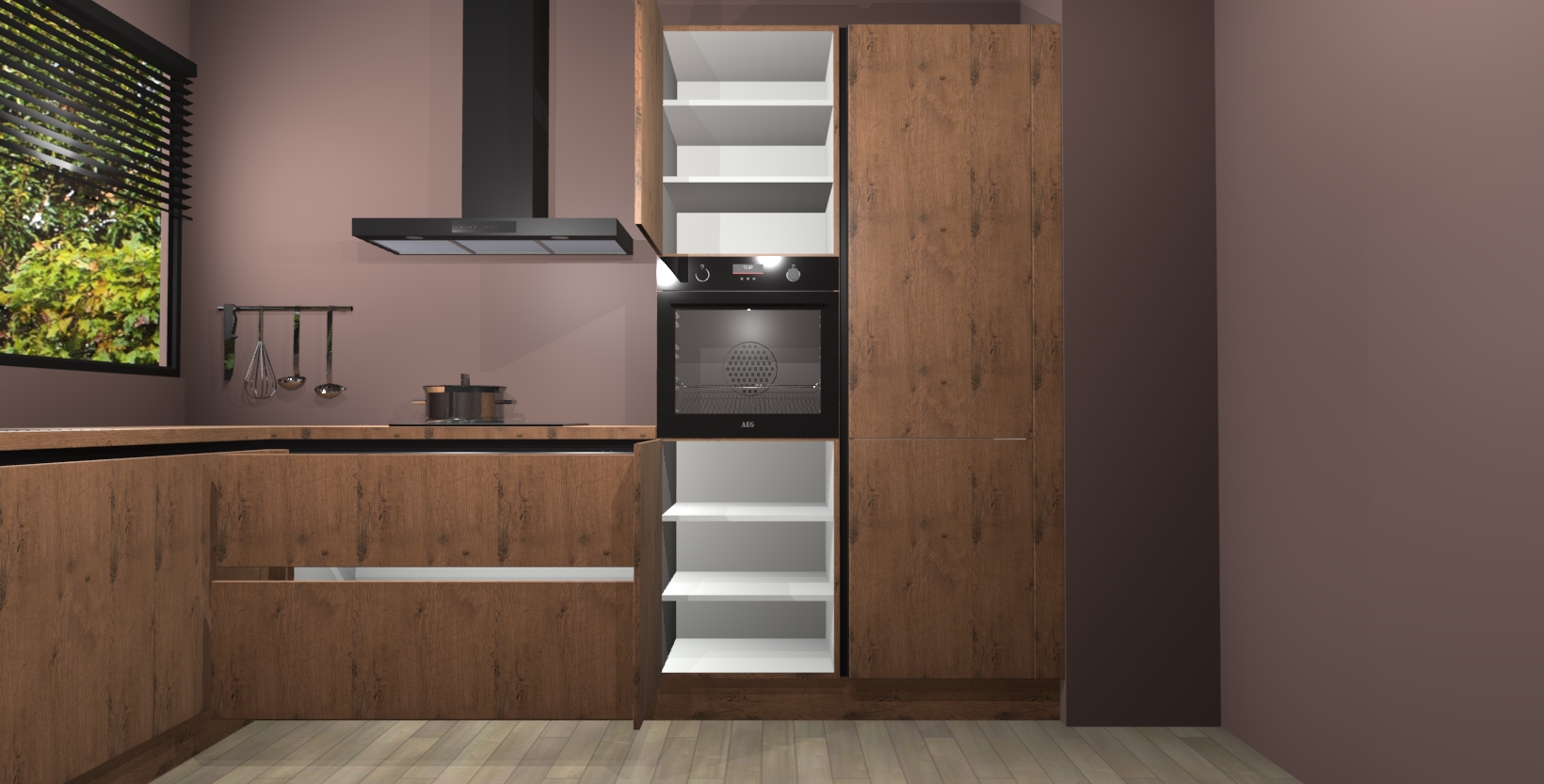 Met een modern, tijdloos design en ruime opslagruimte, zult u zich in no-time thuis voelen in uw nieuwe keuken. Uw leven wordt eenvoudiger met de soft-close deuren die voor het ultieme stille comfort zorgen - geen geluid dat u stoort terwijl u kookt. Ook is de keuken voorzien van 5 ingebouwde apparaten: een oven, inductie kookplaat, afzuigkap, vaatwasser en koelkast. Deze kunnen gemakkelijk na bestelling worden bijgewerkt naar AEG - waardoor uw luxe ervaring compleet is.