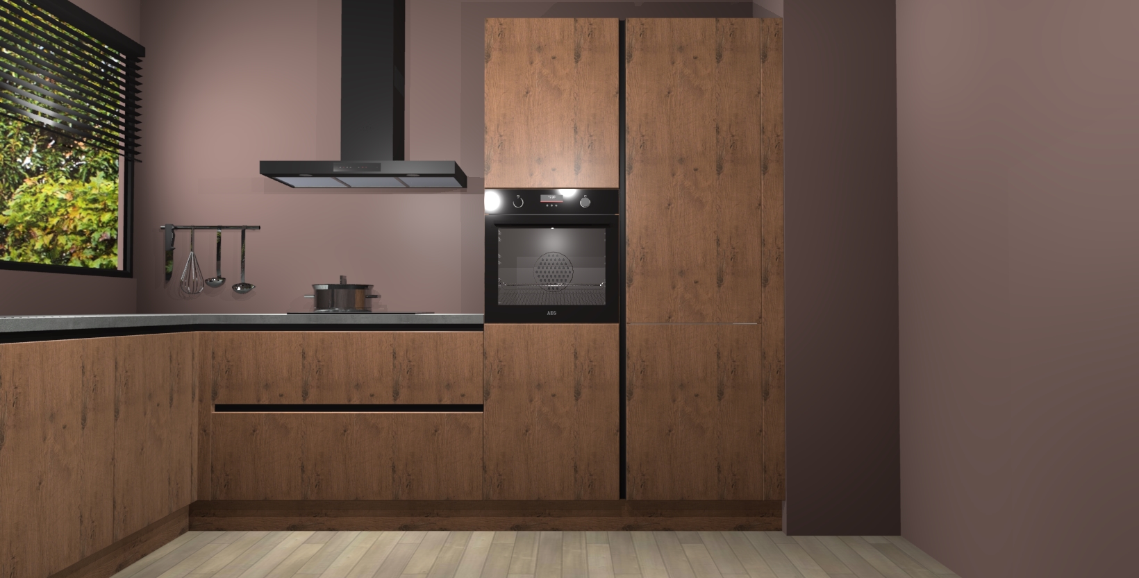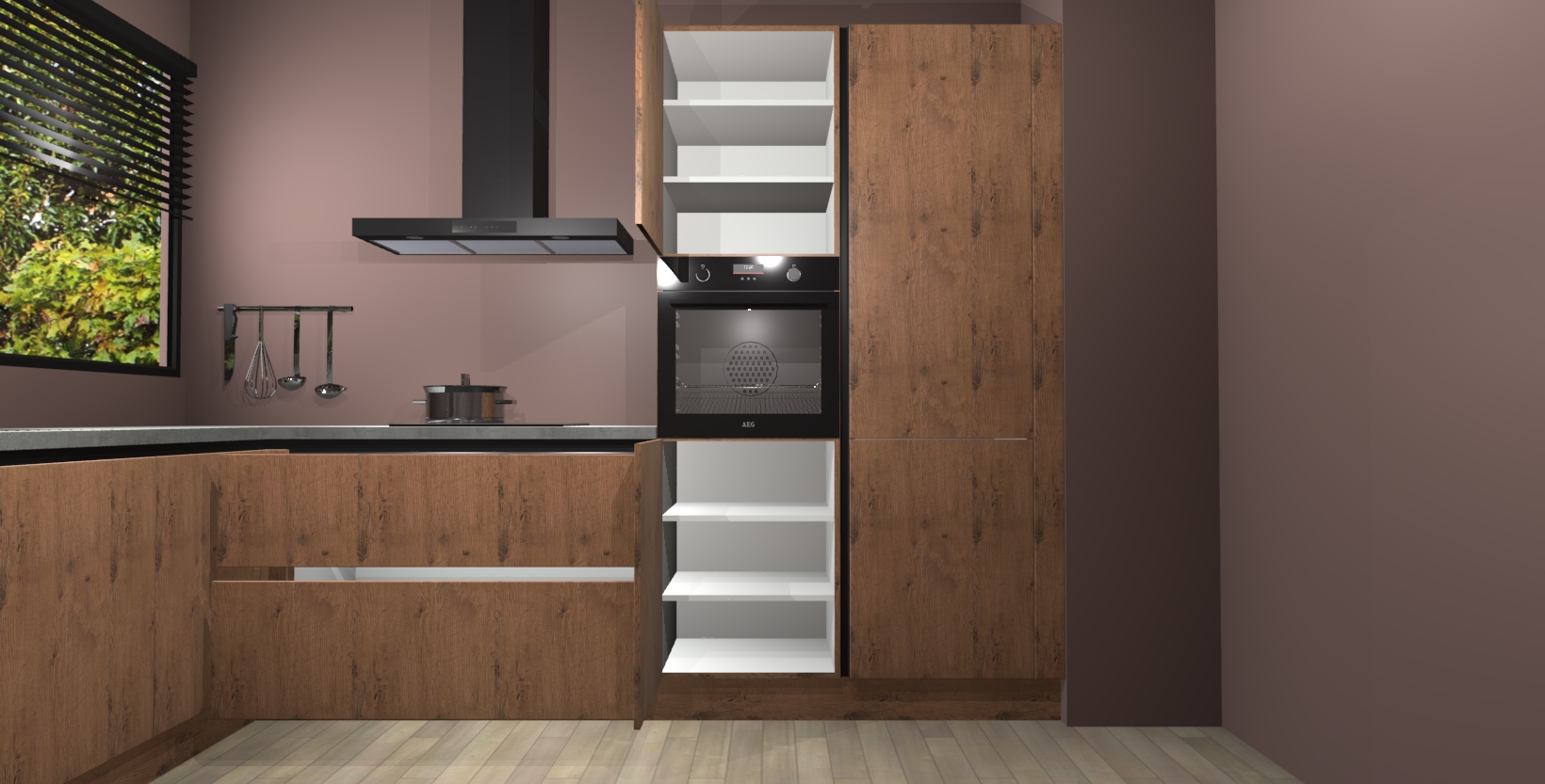 Met een modern, tijdloos design en ruime opslagruimte, zult u zich in no-time thuis voelen in uw nieuwe keuken. Uw leven wordt eenvoudiger met de soft-close deuren die voor het ultieme stille comfort zorgen - geen geluid dat u stoort terwijl u kookt. Ook is de keuken voorzien van 5 ingebouwde apparaten: een oven, inductie kookplaat, afzuigkap, vaatwasser en koelkast. Deze kunnen gemakkelijk na bestelling worden bijgewerkt naar AEG - waardoor uw luxe ervaring compleet is.