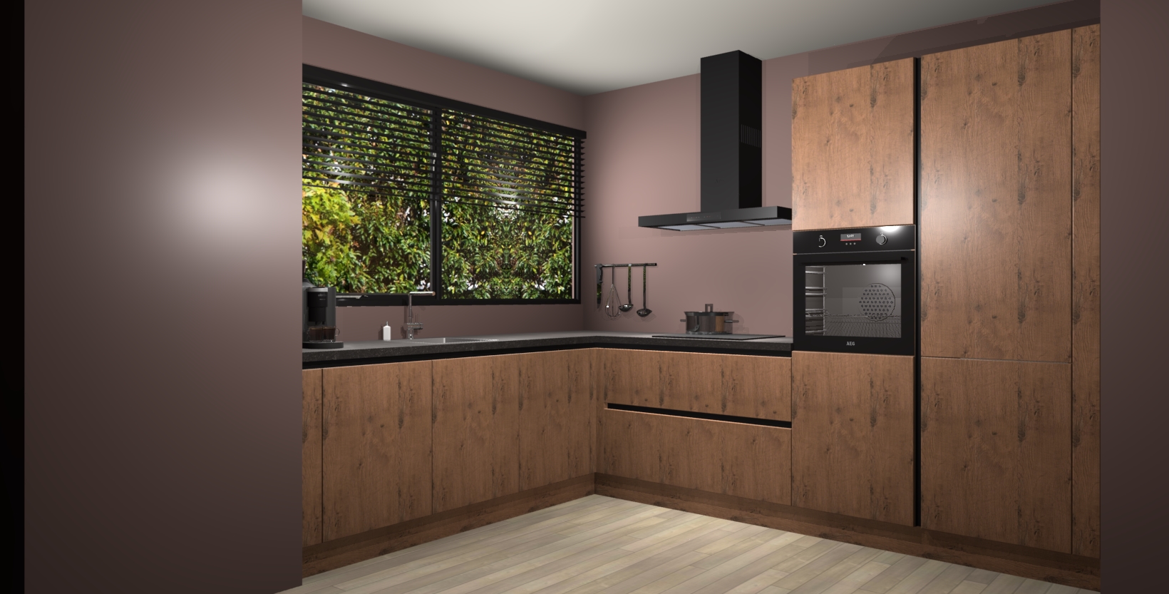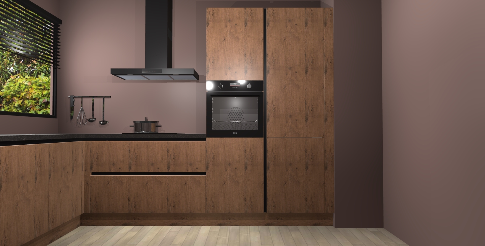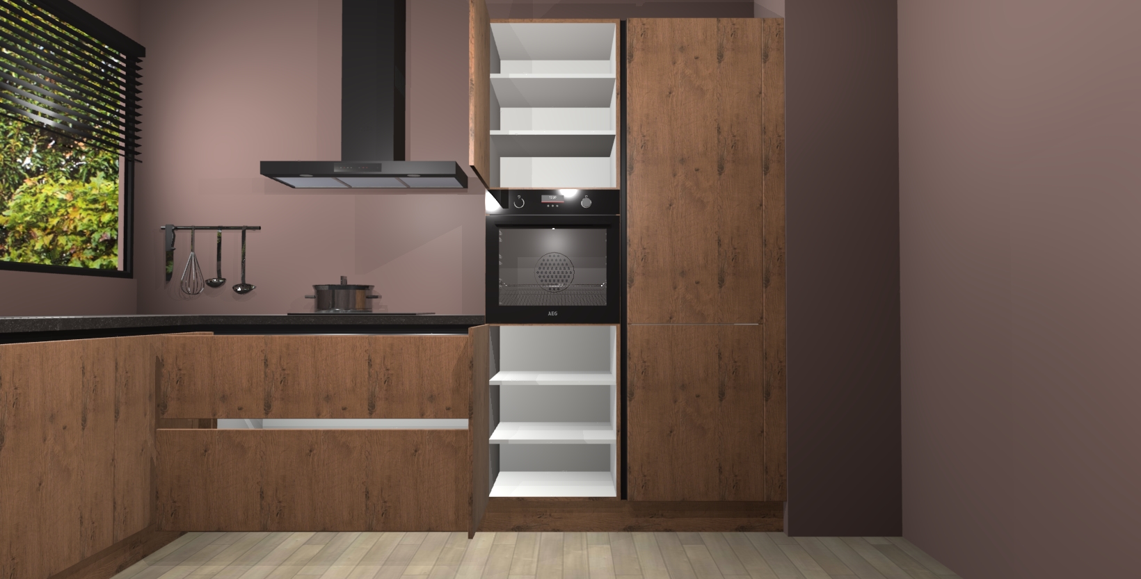 Met een modern, tijdloos design en ruime opslagruimte, zult u zich in no-time thuis voelen in uw nieuwe keuken. Uw leven wordt eenvoudiger met de soft-close deuren die voor het ultieme stille comfort zorgen - geen geluid dat u stoort terwijl u kookt. Ook is de keuken voorzien van 5 ingebouwde apparaten: een oven, inductie kookplaat, afzuigkap, vaatwasser en koelkast. Deze kunnen gemakkelijk na bestelling worden bijgewerkt naar AEG - waardoor uw luxe ervaring compleet is.