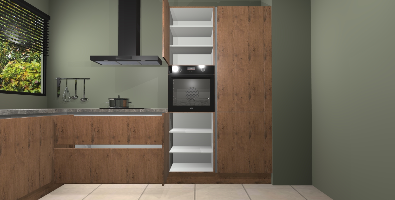 Met een modern, tijdloos design en ruime opslagruimte, zult u zich in no-time thuis voelen in uw nieuwe keuken. Uw leven wordt eenvoudiger met de soft-close deuren die voor het ultieme stille comfort zorgen - geen geluid dat u stoort terwijl u kookt. Ook is de keuken voorzien van 5 ingebouwde apparaten: een oven, inductie kookplaat, afzuigkap, vaatwasser en koelkast. Deze kunnen gemakkelijk na bestelling worden bijgewerkt naar AEG - waardoor uw luxe ervaring compleet is.