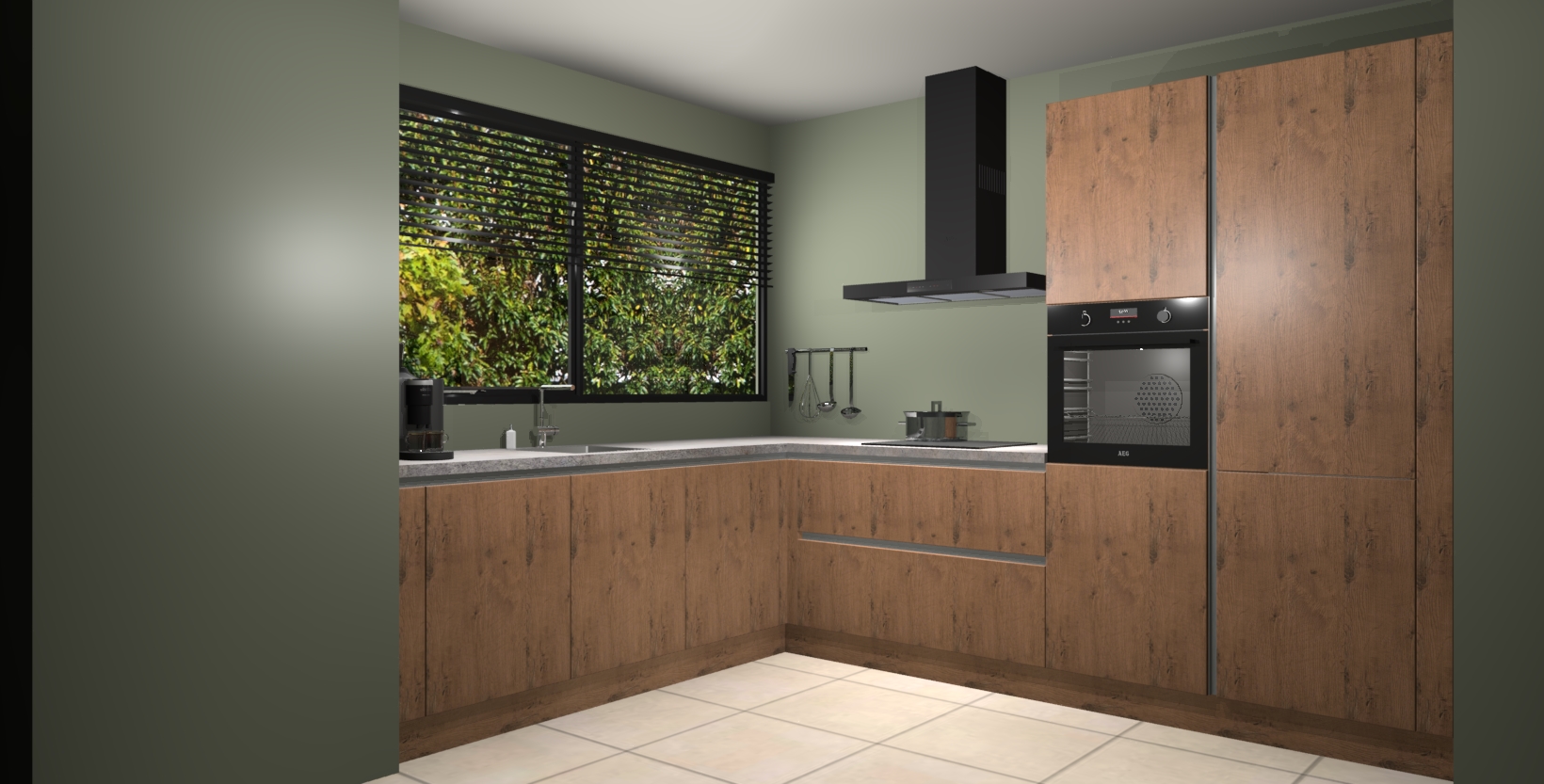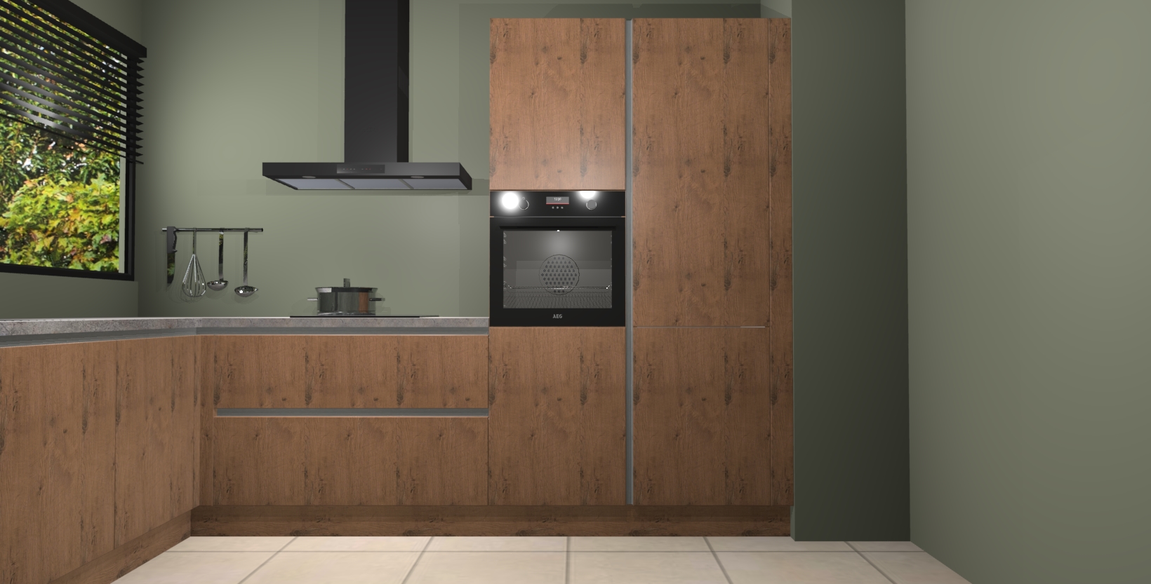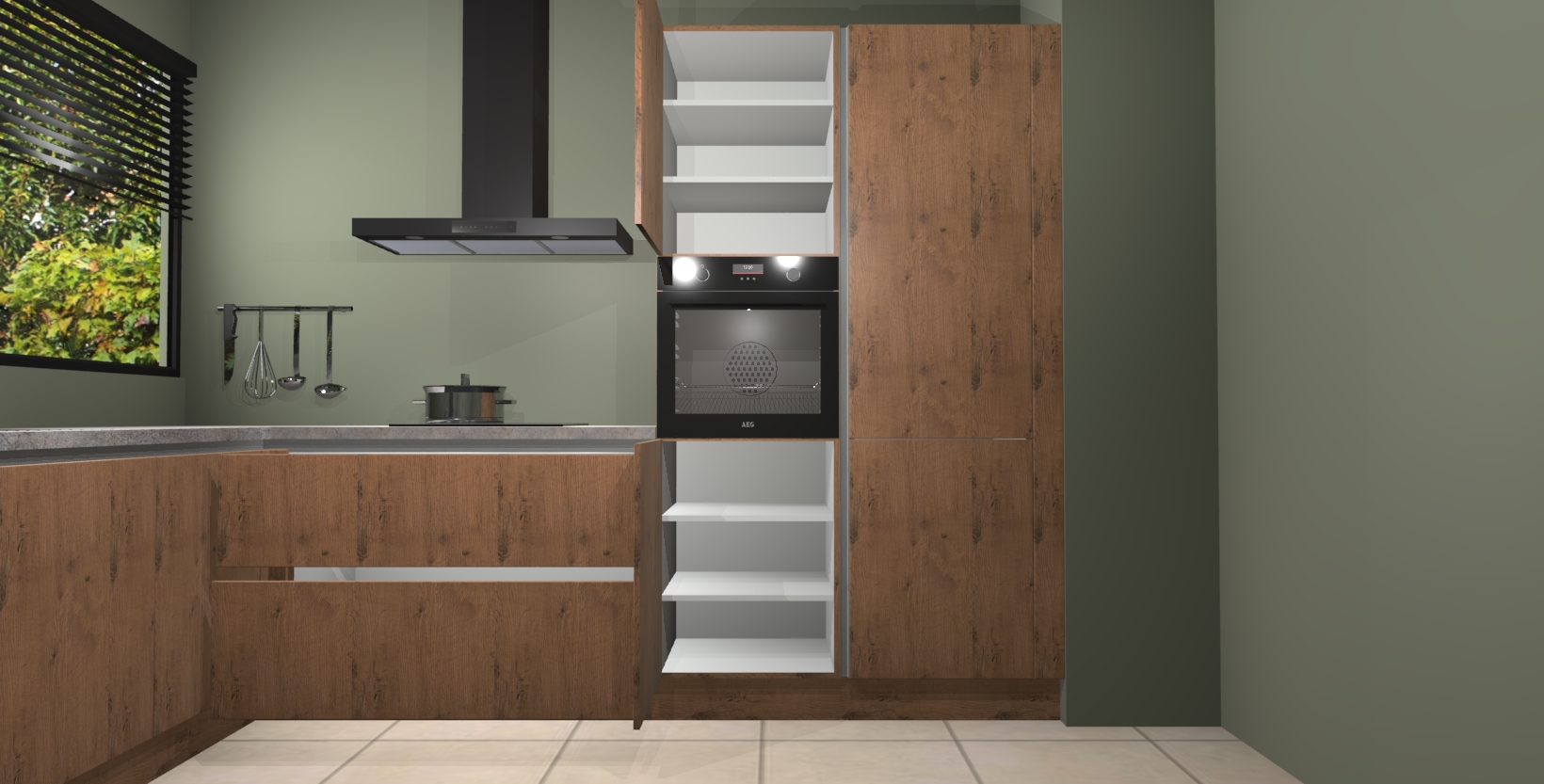 Met een modern, tijdloos design en ruime opslagruimte, zult u zich in no-time thuis voelen in uw nieuwe keuken. Uw leven wordt eenvoudiger met de soft-close deuren die voor het ultieme stille comfort zorgen - geen geluid dat u stoort terwijl u kookt. Ook is de keuken voorzien van 5 ingebouwde apparaten: een oven, inductie kookplaat, afzuigkap, vaatwasser en koelkast. Deze kunnen gemakkelijk na bestelling worden bijgewerkt naar AEG - waardoor uw luxe ervaring compleet is.