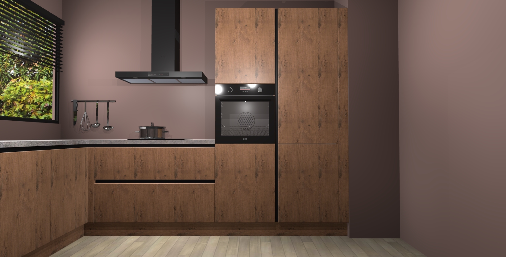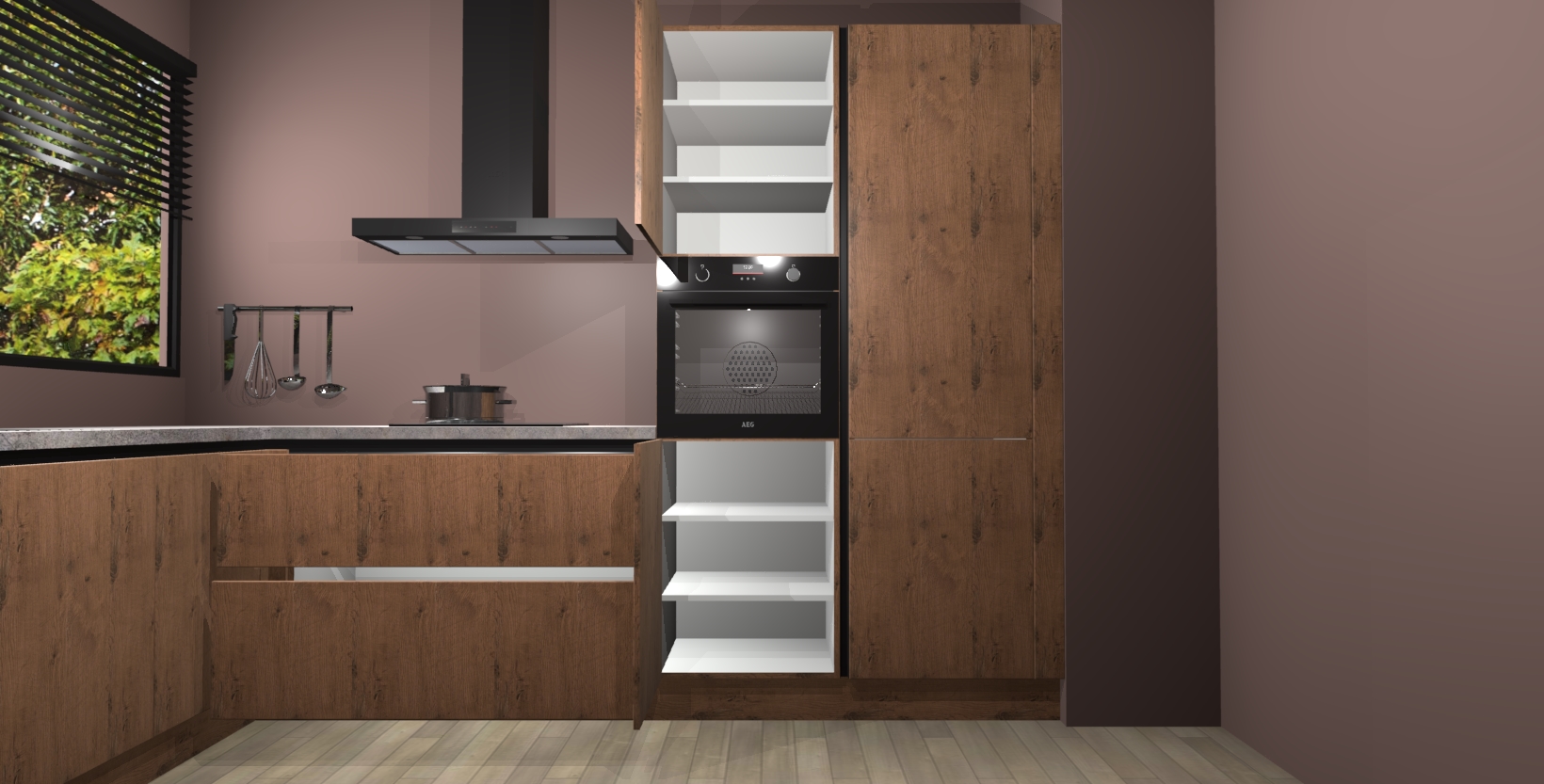 Met een modern, tijdloos design en ruime opslagruimte, zult u zich in no-time thuis voelen in uw nieuwe keuken. Uw leven wordt eenvoudiger met de soft-close deuren die voor het ultieme stille comfort zorgen - geen geluid dat u stoort terwijl u kookt. Ook is de keuken voorzien van 5 ingebouwde apparaten: een oven, inductie kookplaat, afzuigkap, vaatwasser en koelkast. Deze kunnen gemakkelijk na bestelling worden bijgewerkt naar AEG - waardoor uw luxe ervaring compleet is.