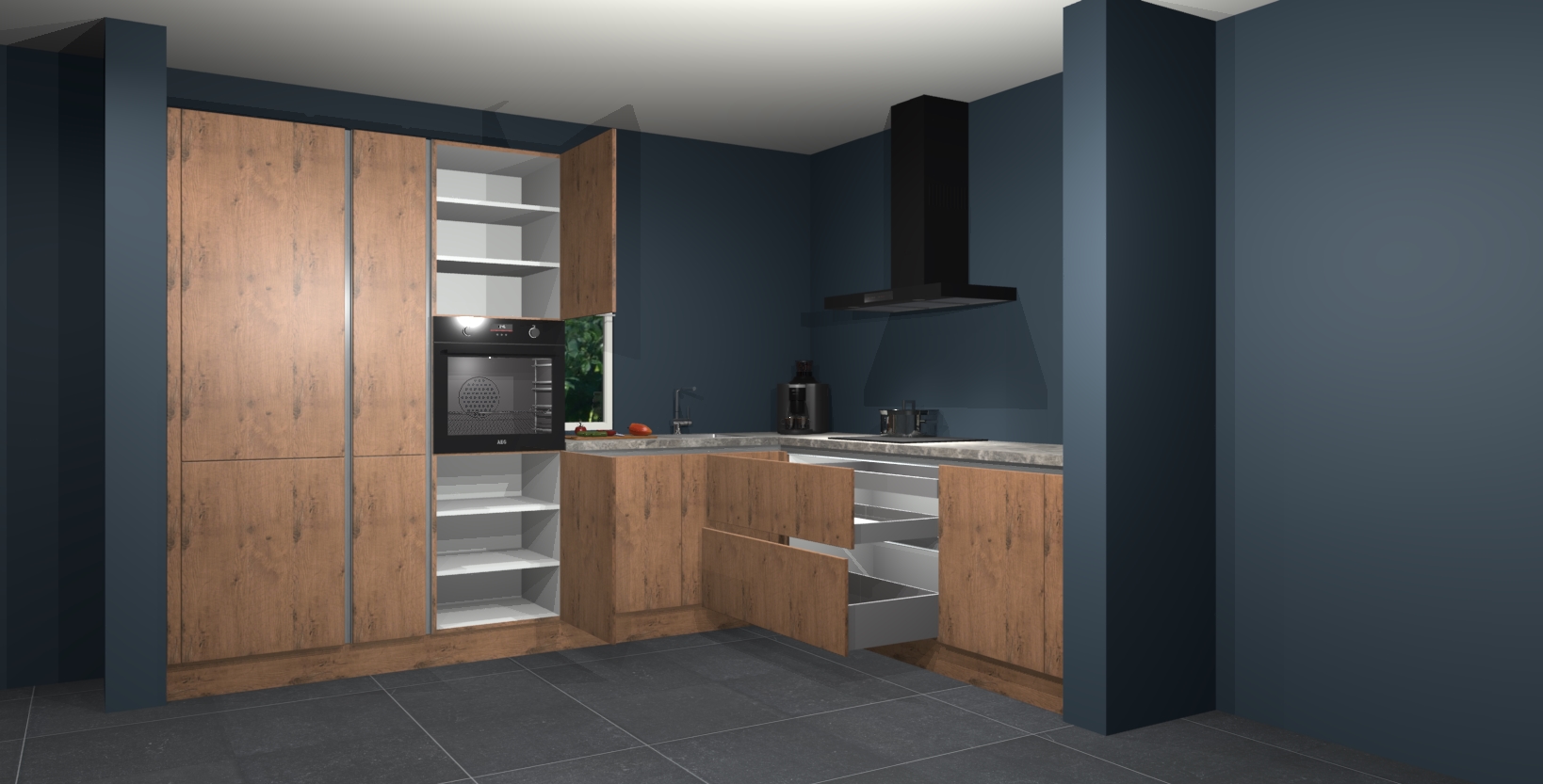 Hoekonderkast met le-mans systeem