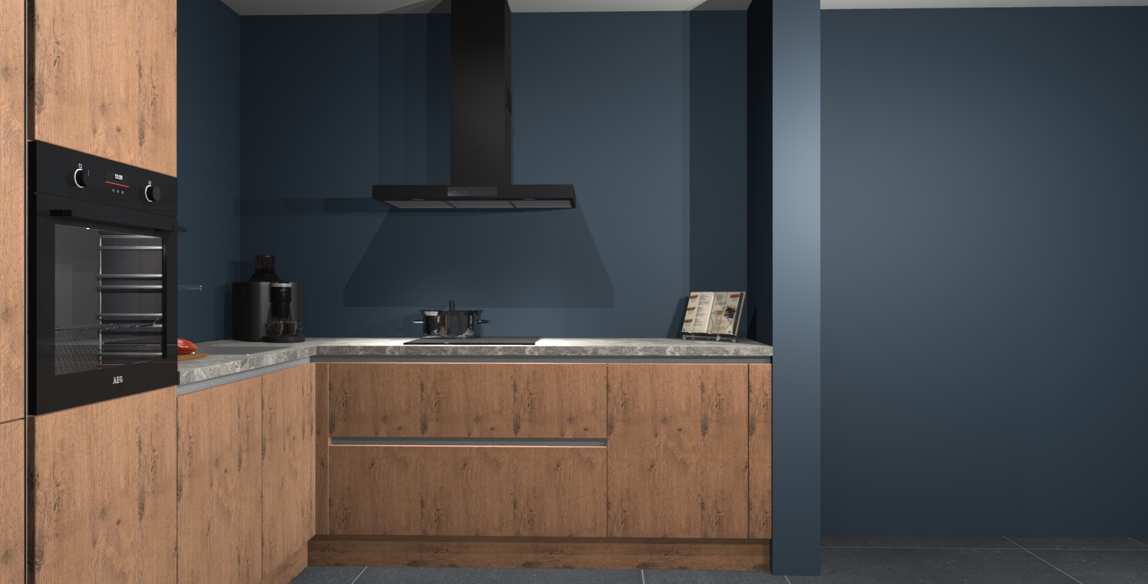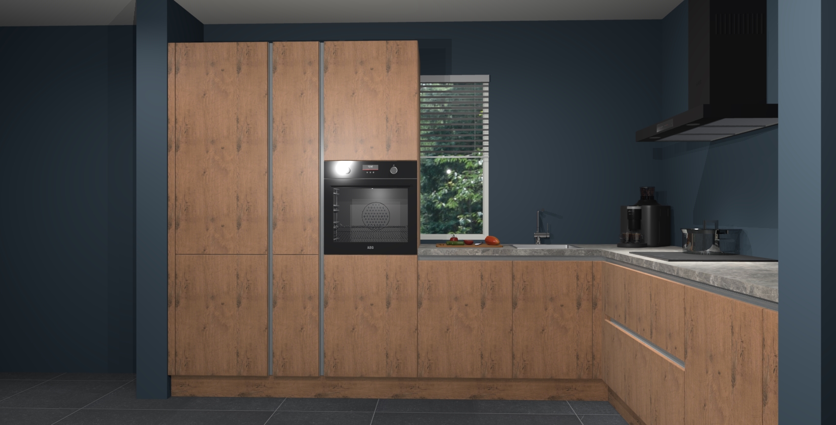 Met een modern, tijdloos design en ruime opslagruimte, zult u zich in no-time thuis voelen in uw nieuwe keuken. Uw leven wordt eenvoudiger met de soft-close deuren die voor het ultieme stille comfort zorgen - geen geluid dat u stoort terwijl u kookt. Ook is de keuken voorzien van 5 ingebouwde apparaten: een oven, inductie kookplaat, afzuigkap, vaatwasser en koelkast. Deze kunnen gemakkelijk na bestelling worden bijgewerkt naar AEG - waardoor uw luxe ervaring compleet is.