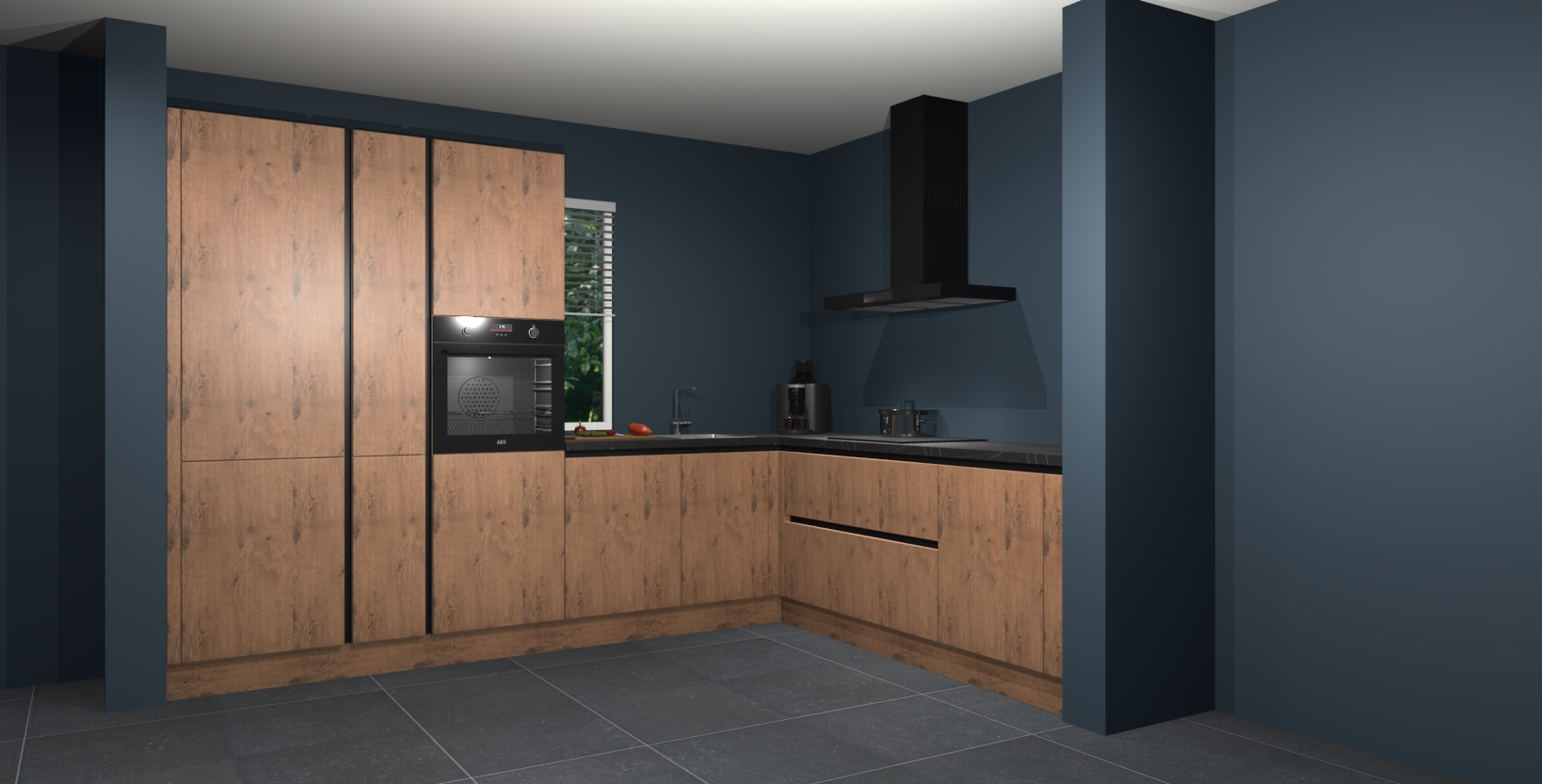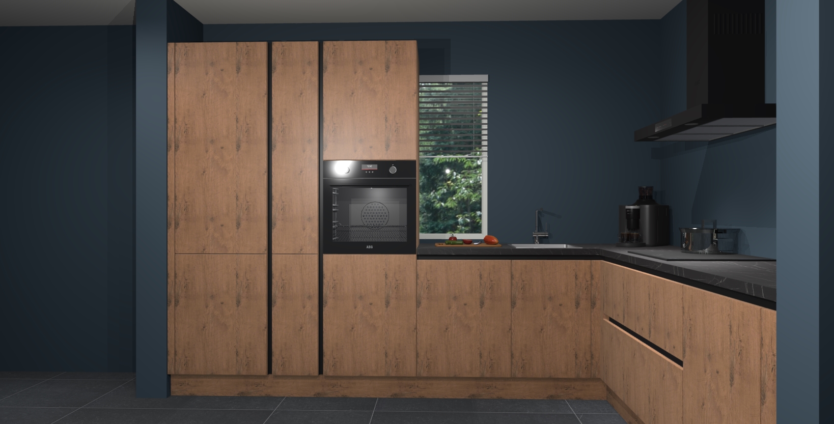 Met een modern, tijdloos design en ruime opslagruimte, zult u zich in no-time thuis voelen in uw nieuwe keuken. Uw leven wordt eenvoudiger met de soft-close deuren die voor het ultieme stille comfort zorgen - geen geluid dat u stoort terwijl u kookt. Ook is de keuken voorzien van 5 ingebouwde apparaten: een oven, inductie kookplaat, afzuigkap, vaatwasser en koelkast. Deze kunnen gemakkelijk na bestelling worden bijgewerkt naar AEG - waardoor uw luxe ervaring compleet is.