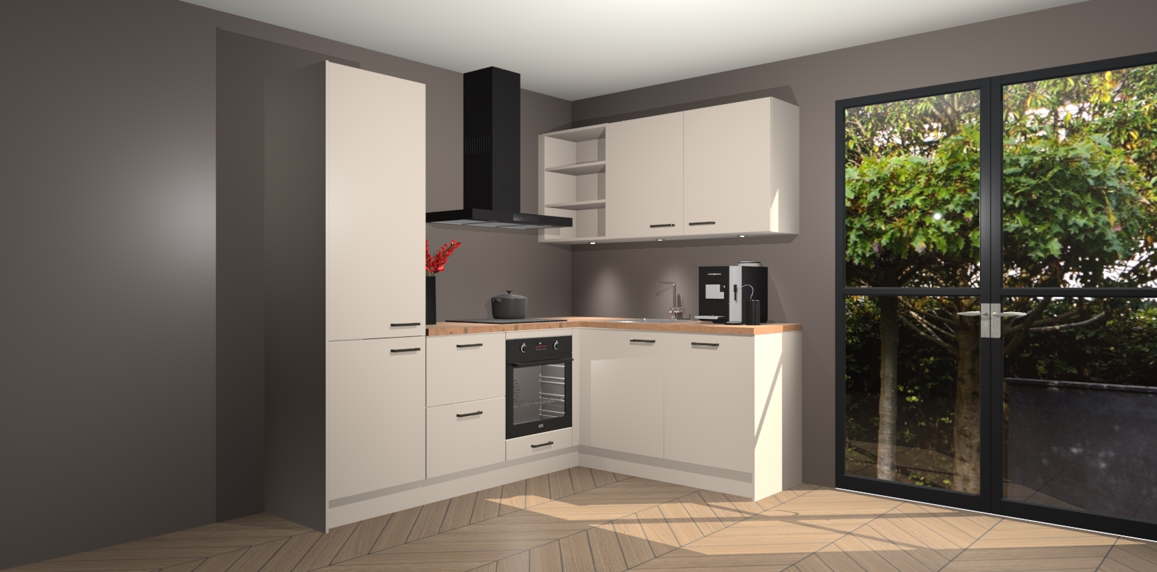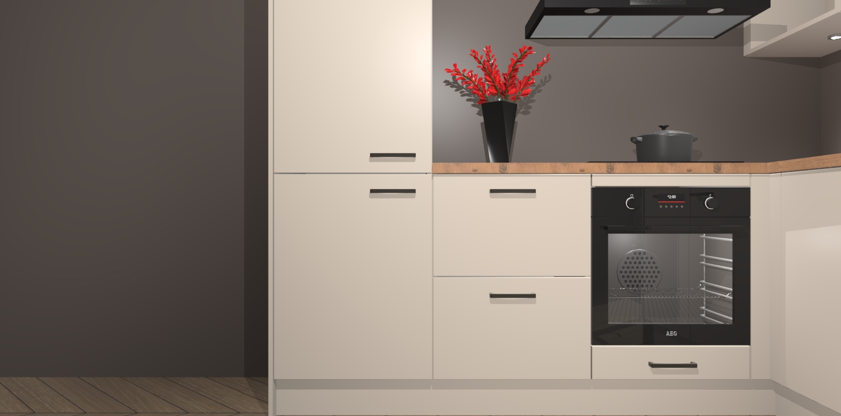 Inclusief plinten, stelpoten en werkblad