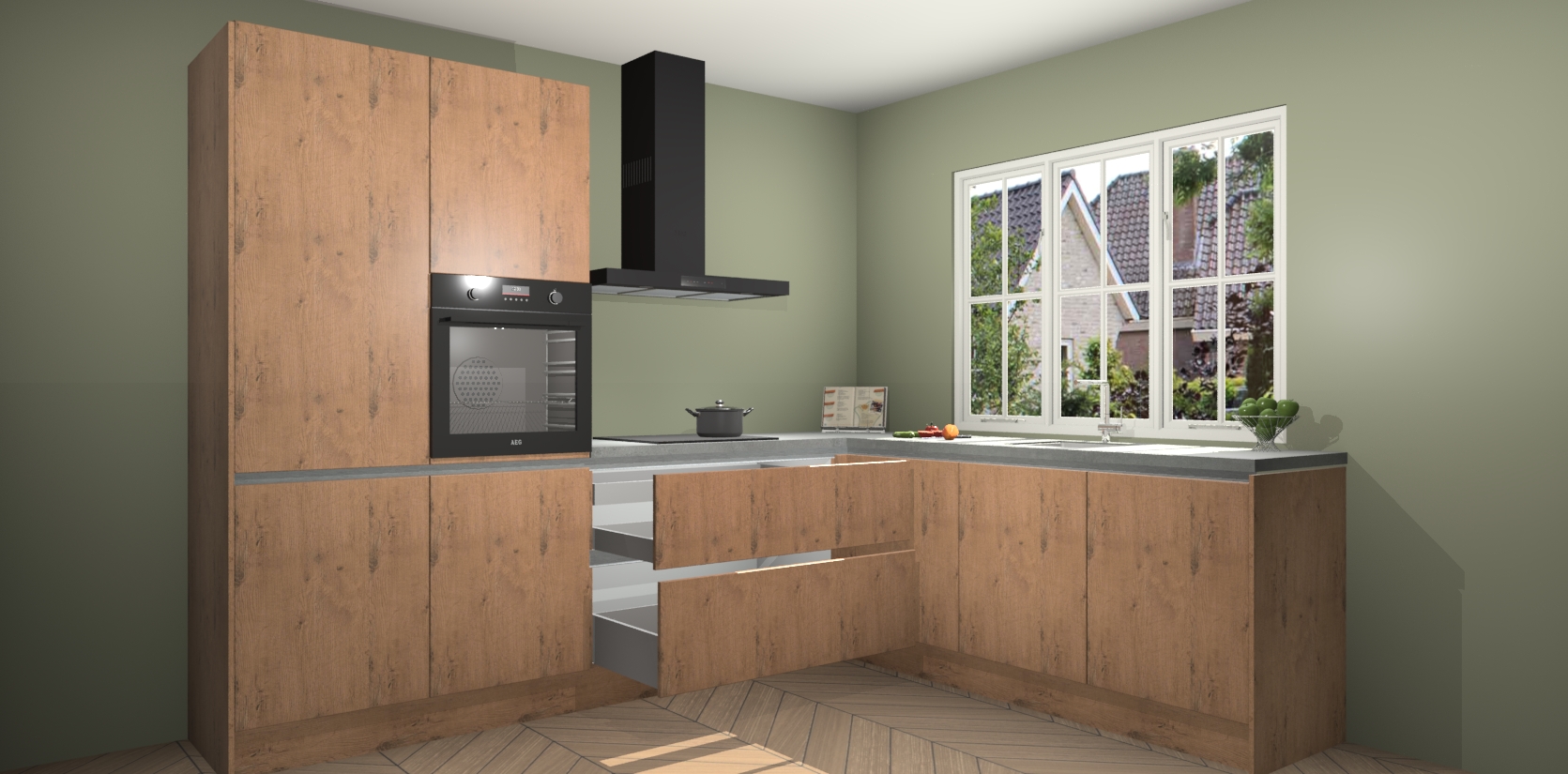Inclusief plinten, stelpoten en werkblad