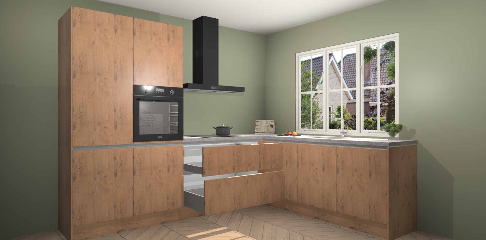 Inclusief plinten, stelpoten en werkblad