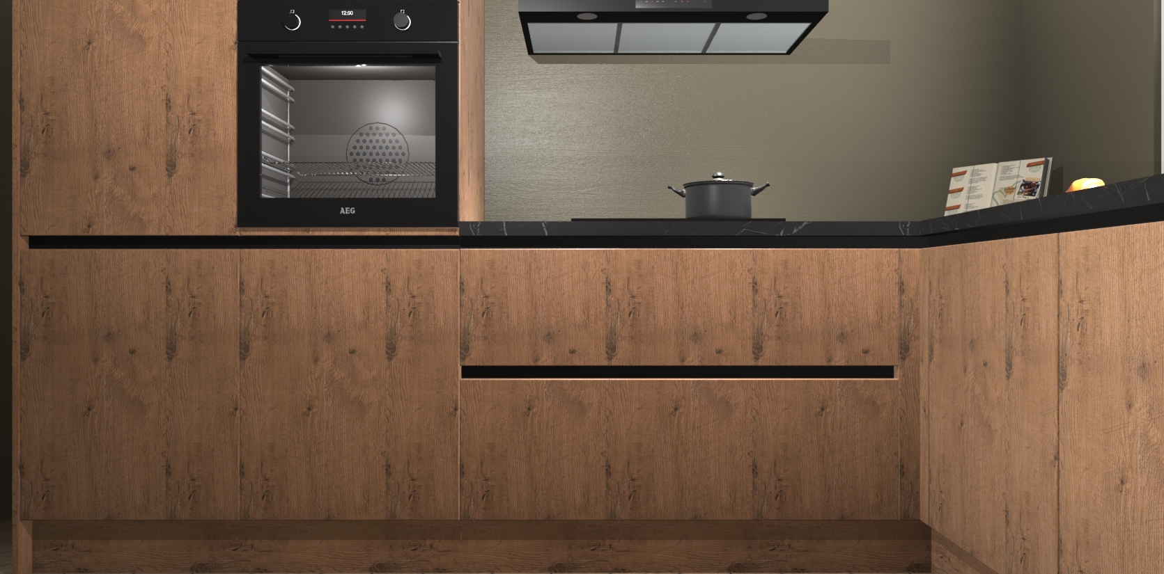 Heeft u genoeg van dezelfde keukenontwerpen die de markt overspoelen? Dan is de Astoria Eiken greeploze keuken Kazan de juiste keuze voor u! Deze prachtige hoekkeuken heeft een modern en tijdloos design dat een elegant tintje geeft aan uw ruimte.