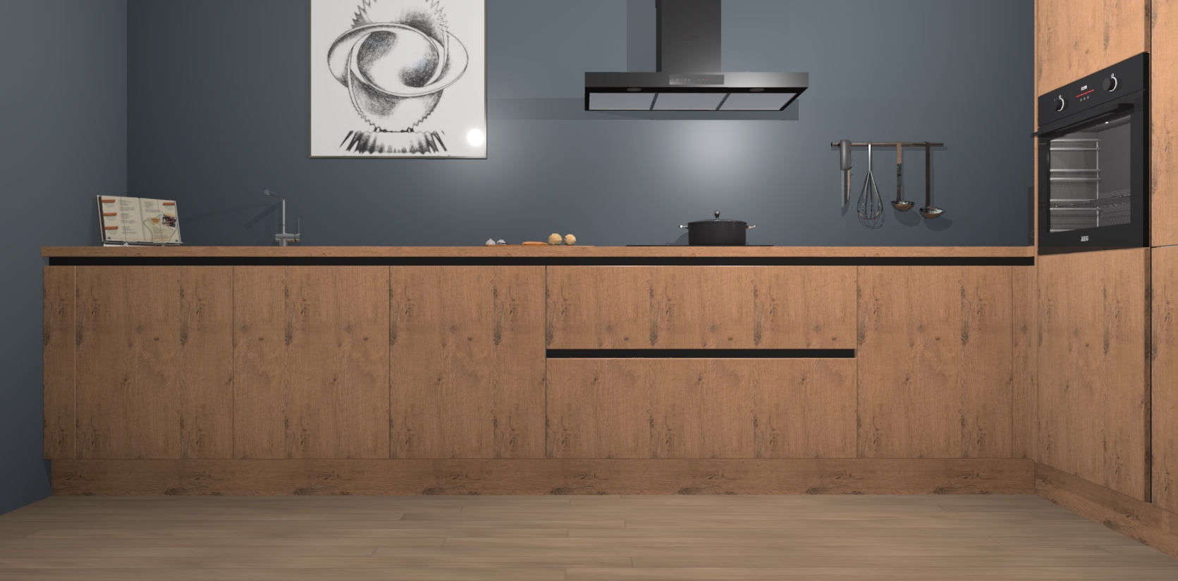 Welkom bij de Astoria Eiken greeploze keuken Khao Lak. Deze prachtige keuken zal de komende jaren het middelpunt van de belangstelling in uw huis zijn. Uitgerust met vijf inbouwapparaten komt u nooit kookgereedschap tekort. Bovendien geeft de warme houtlook elke ruimte een uitnodigende en tijdloze uitstraling.