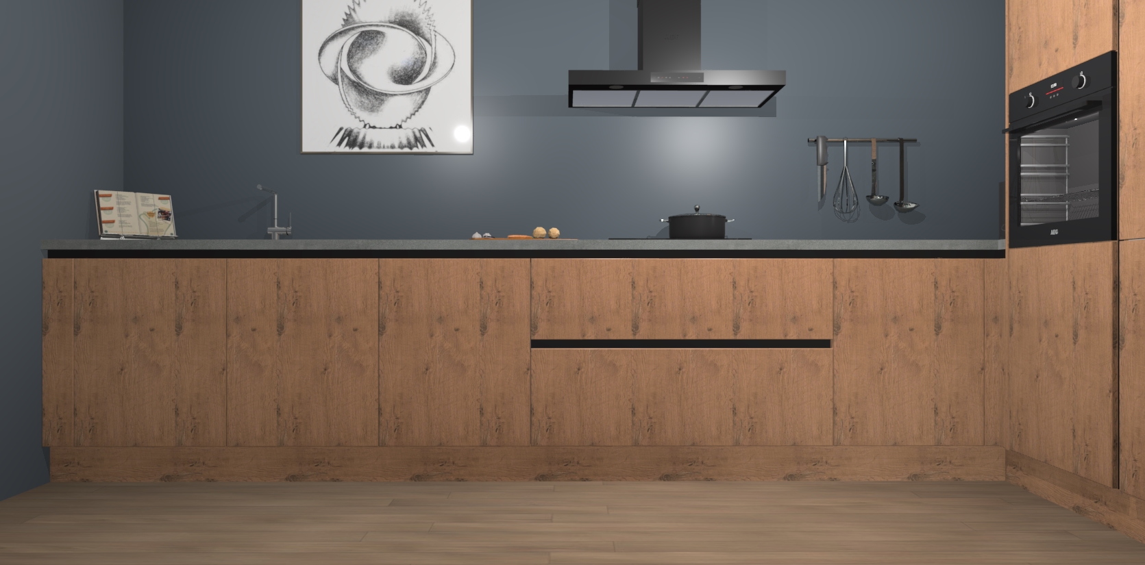 Welkom bij de Astoria Eiken greeploze keuken Khao Lak. Deze prachtige keuken zal de komende jaren het middelpunt van de belangstelling in uw huis zijn. Uitgerust met vijf inbouwapparaten komt u nooit kookgereedschap tekort. Bovendien geeft de warme houtlook elke ruimte een uitnodigende en tijdloze uitstraling.