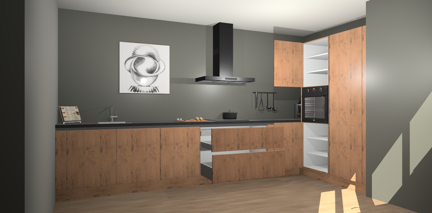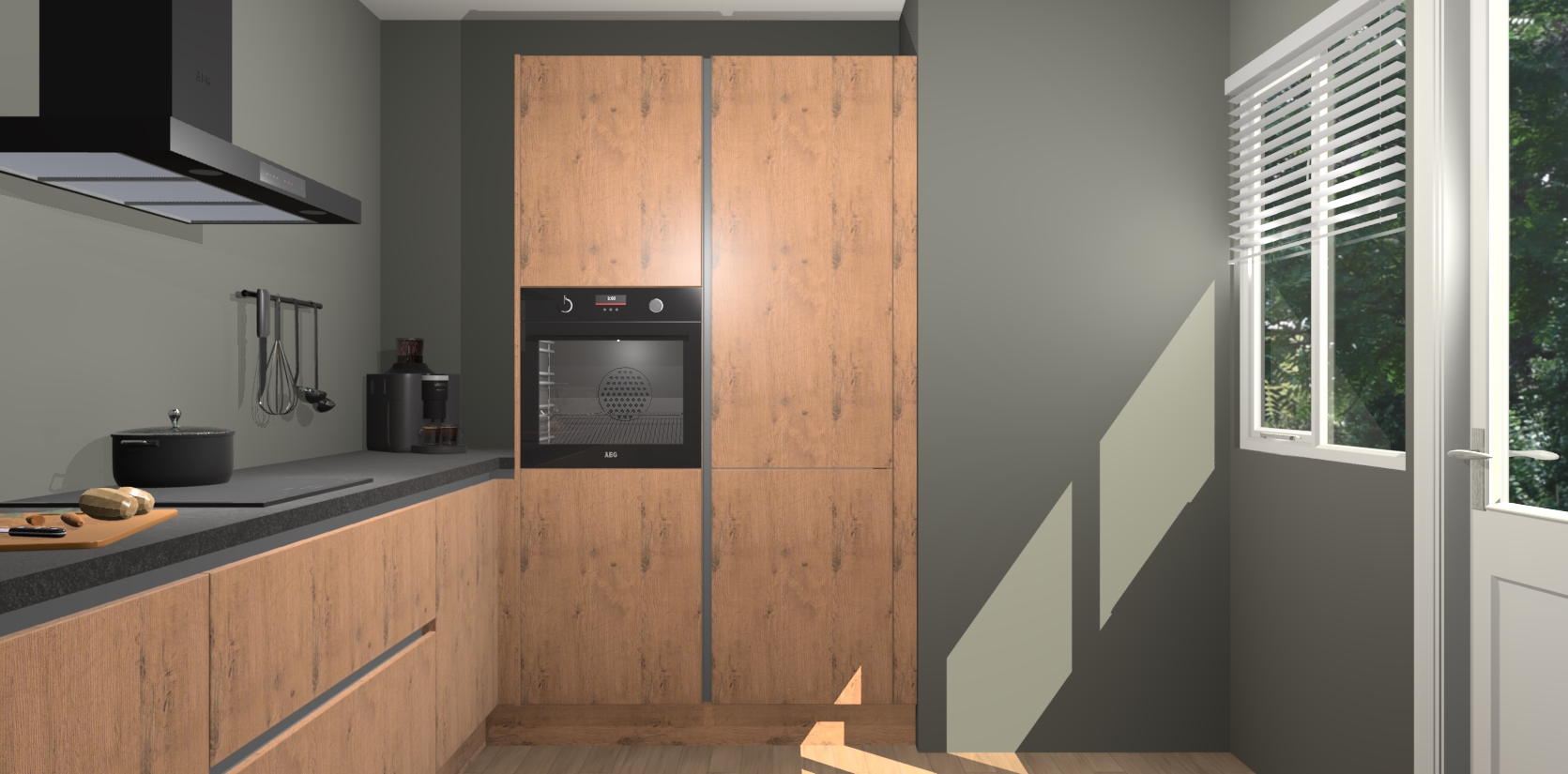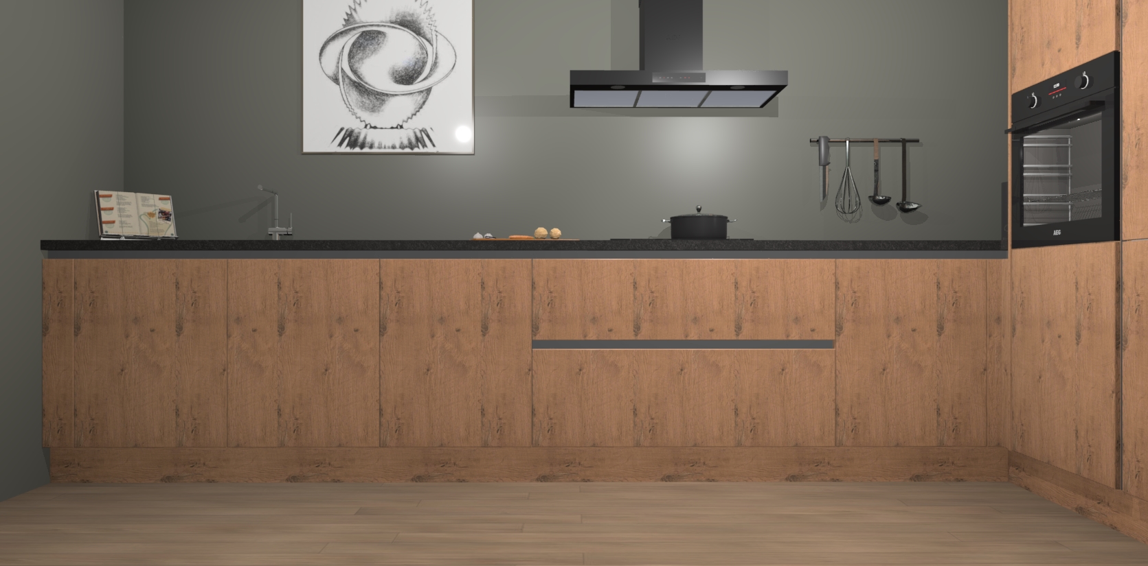 Welkom bij de Astoria Eiken greeploze keuken Khao Lak. Deze prachtige keuken zal de komende jaren het middelpunt van de belangstelling in uw huis zijn. Uitgerust met vijf inbouwapparaten komt u nooit kookgereedschap tekort. Bovendien geeft de warme houtlook elke ruimte een uitnodigende en tijdloze uitstraling.
