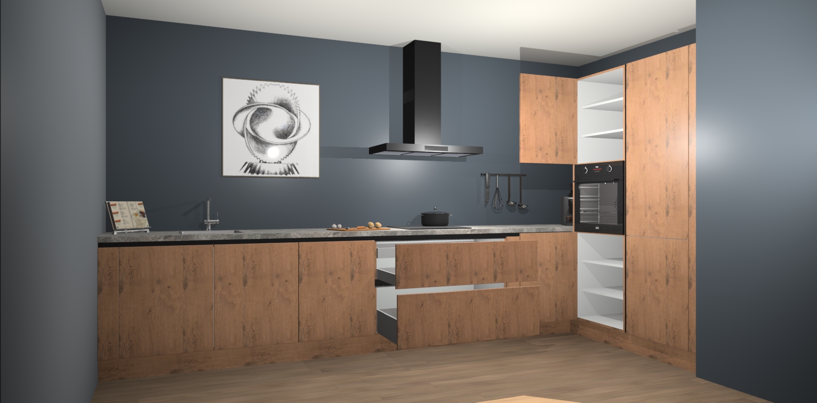 Welkom bij de Astoria Eiken greeploze keuken Khao Lak. Deze prachtige keuken zal de komende jaren het middelpunt van de belangstelling in uw huis zijn. Uitgerust met vijf inbouwapparaten komt u nooit kookgereedschap tekort. Bovendien geeft de warme houtlook elke ruimte een uitnodigende en tijdloze uitstraling.