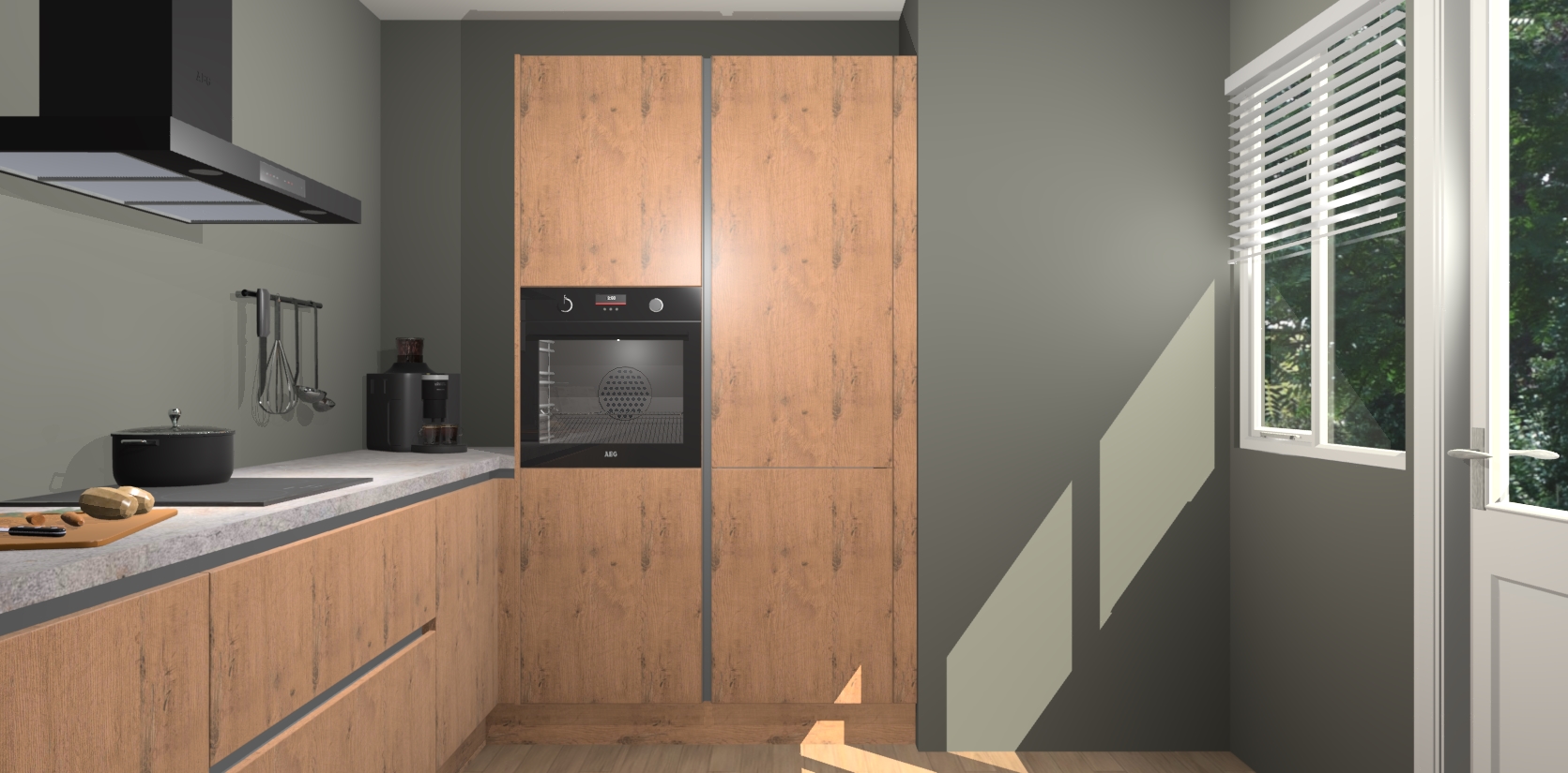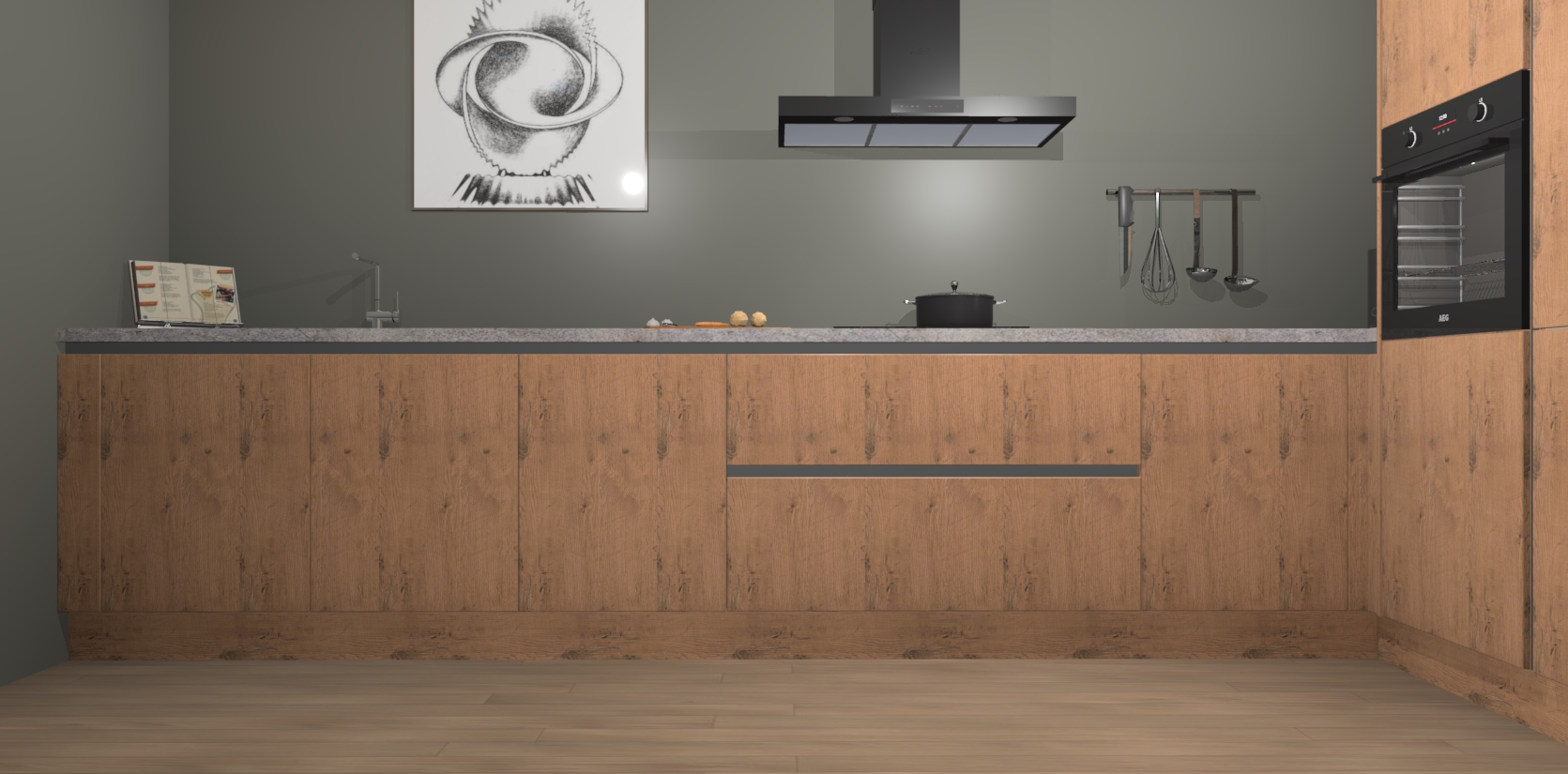 Welkom bij de Astoria Eiken greeploze keuken Khao Lak. Deze prachtige keuken zal de komende jaren het middelpunt van de belangstelling in uw huis zijn. Uitgerust met vijf inbouwapparaten komt u nooit kookgereedschap tekort. Bovendien geeft de warme houtlook elke ruimte een uitnodigende en tijdloze uitstraling.
