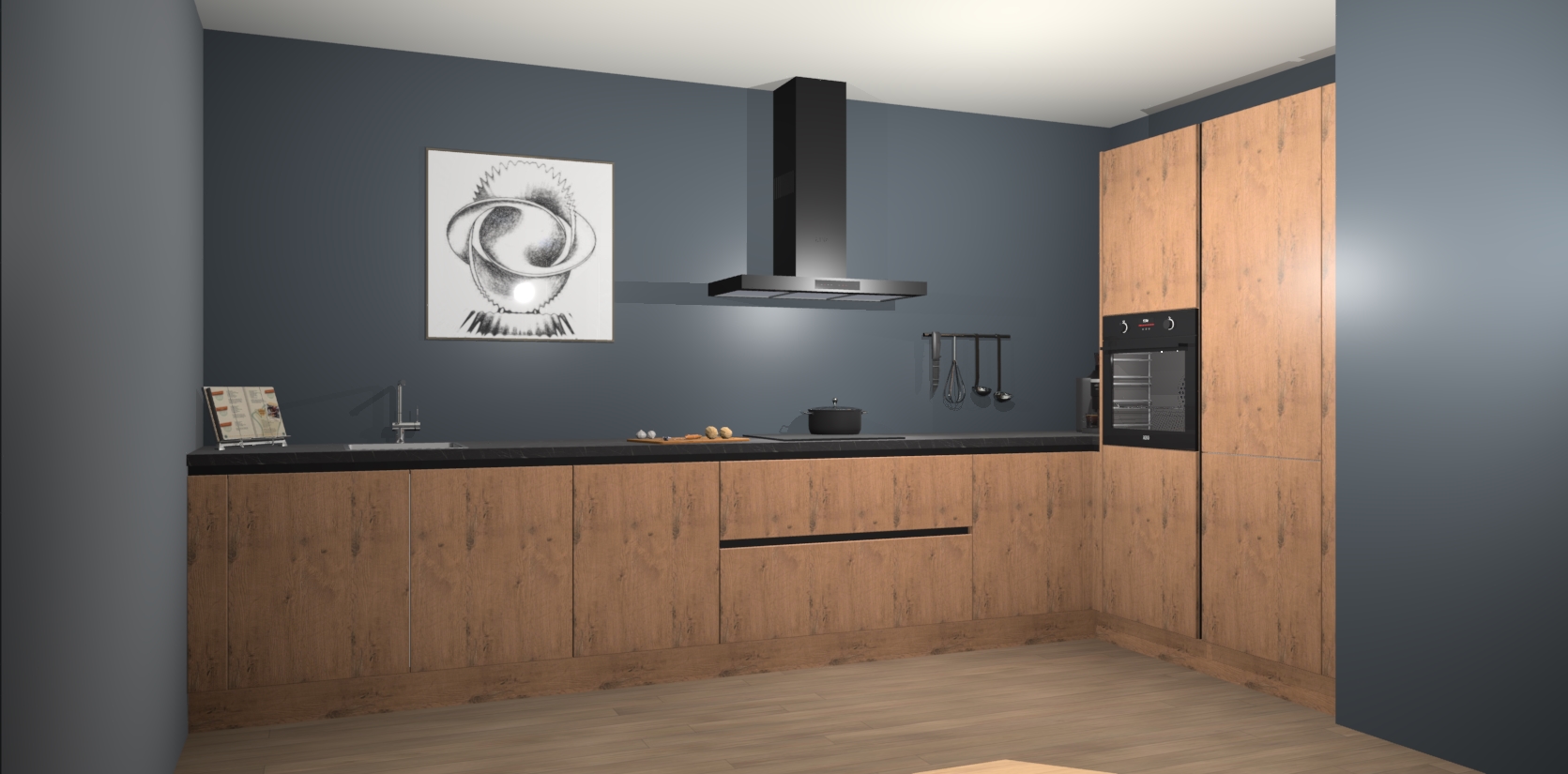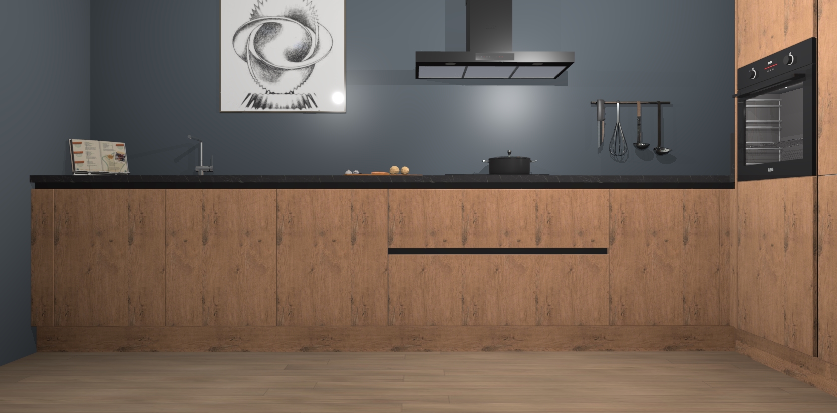 Welkom bij de Astoria Eiken greeploze keuken Khao Lak. Deze prachtige keuken zal de komende jaren het middelpunt van de belangstelling in uw huis zijn. Uitgerust met vijf inbouwapparaten komt u nooit kookgereedschap tekort. Bovendien geeft de warme houtlook elke ruimte een uitnodigende en tijdloze uitstraling.
