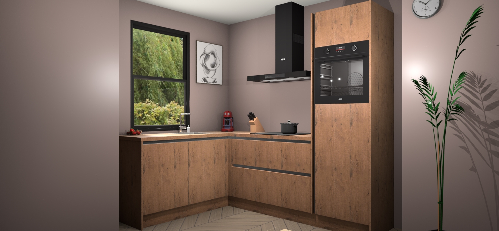 Deze prachtige hoekkeuken heeft alle benodigdheden om uw droomkook- en eetruimte compleet te maken. De Astoria Eiken kasten bieden een echo van raffinement, terwijl de 5 inbouwapparaten genoeg opties bieden voor het bereiden van heerlijke maaltijden. De oven, inductiekookplaat, afzuigkap, vaatwasser en koelkast zorgen ervoor dat u tijd in de keuken zo efficiënt mogelijk verloopt, terwijl ze ook dat extra vleugje luxe bieden.