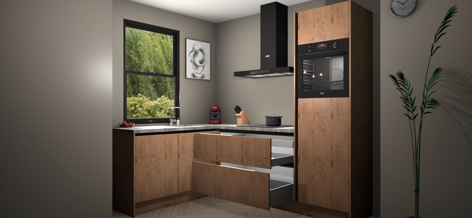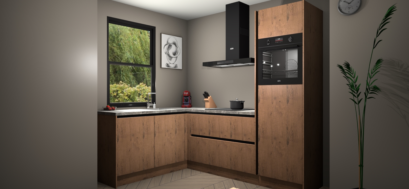 Deze prachtige hoekkeuken heeft alle benodigdheden om uw droomkook- en eetruimte compleet te maken. De Astoria Eiken kasten bieden een echo van raffinement, terwijl de 5 inbouwapparaten genoeg opties bieden voor het bereiden van heerlijke maaltijden. De oven, inductiekookplaat, afzuigkap, vaatwasser en koelkast zorgen ervoor dat u tijd in de keuken zo efficiënt mogelijk verloopt, terwijl ze ook dat extra vleugje luxe bieden.