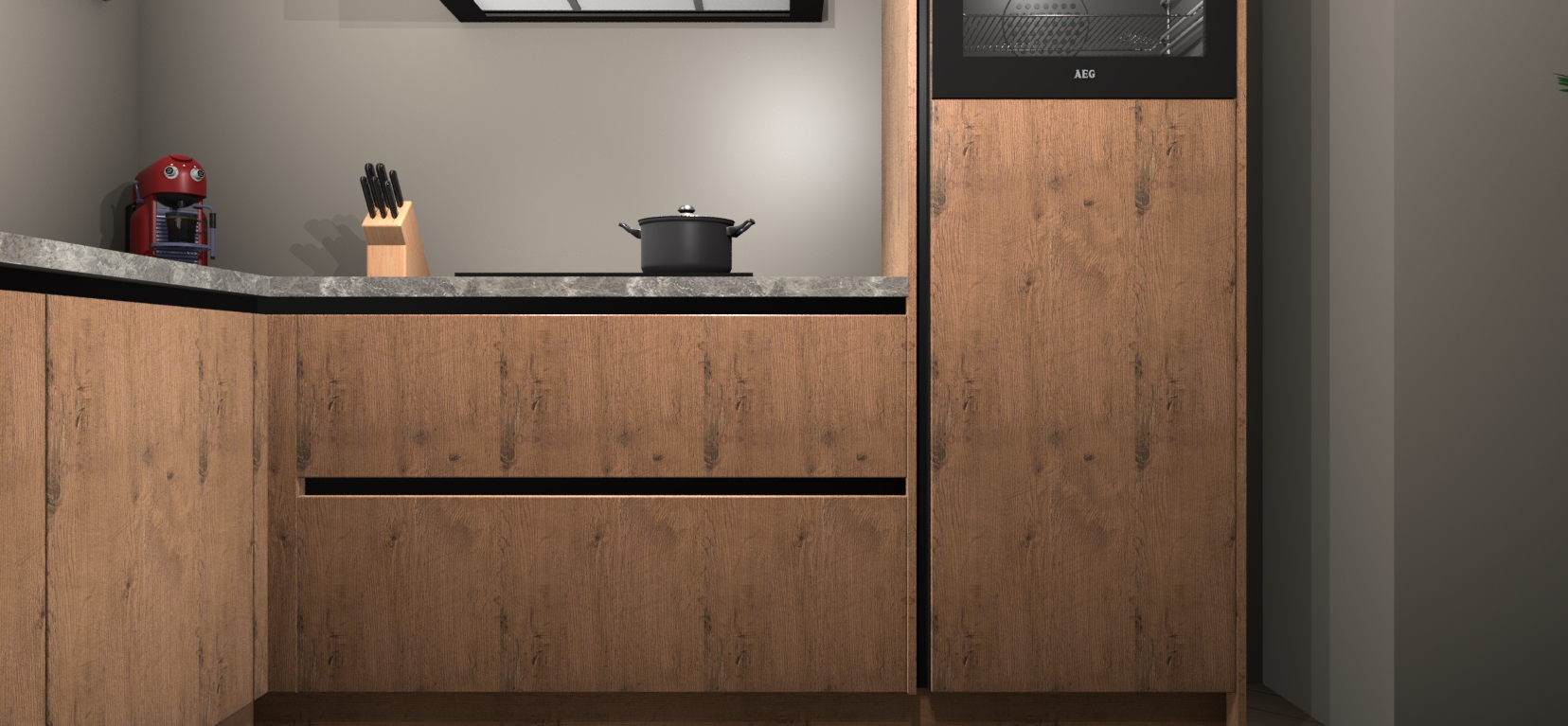 Inclusief plinten, stelpoten en werkblad
