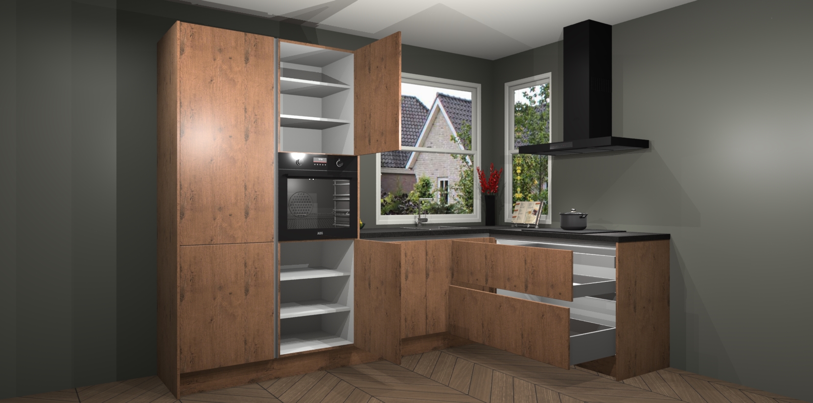 We hebben iets speciaals voor u: de Astoria Eiken greeploze keuken Kotor. Het is een hoekkeuken die sfeer en warmte uitstraalt, en zijn hout-look geeft hem een unieke touch. Perfect voor elk huis!