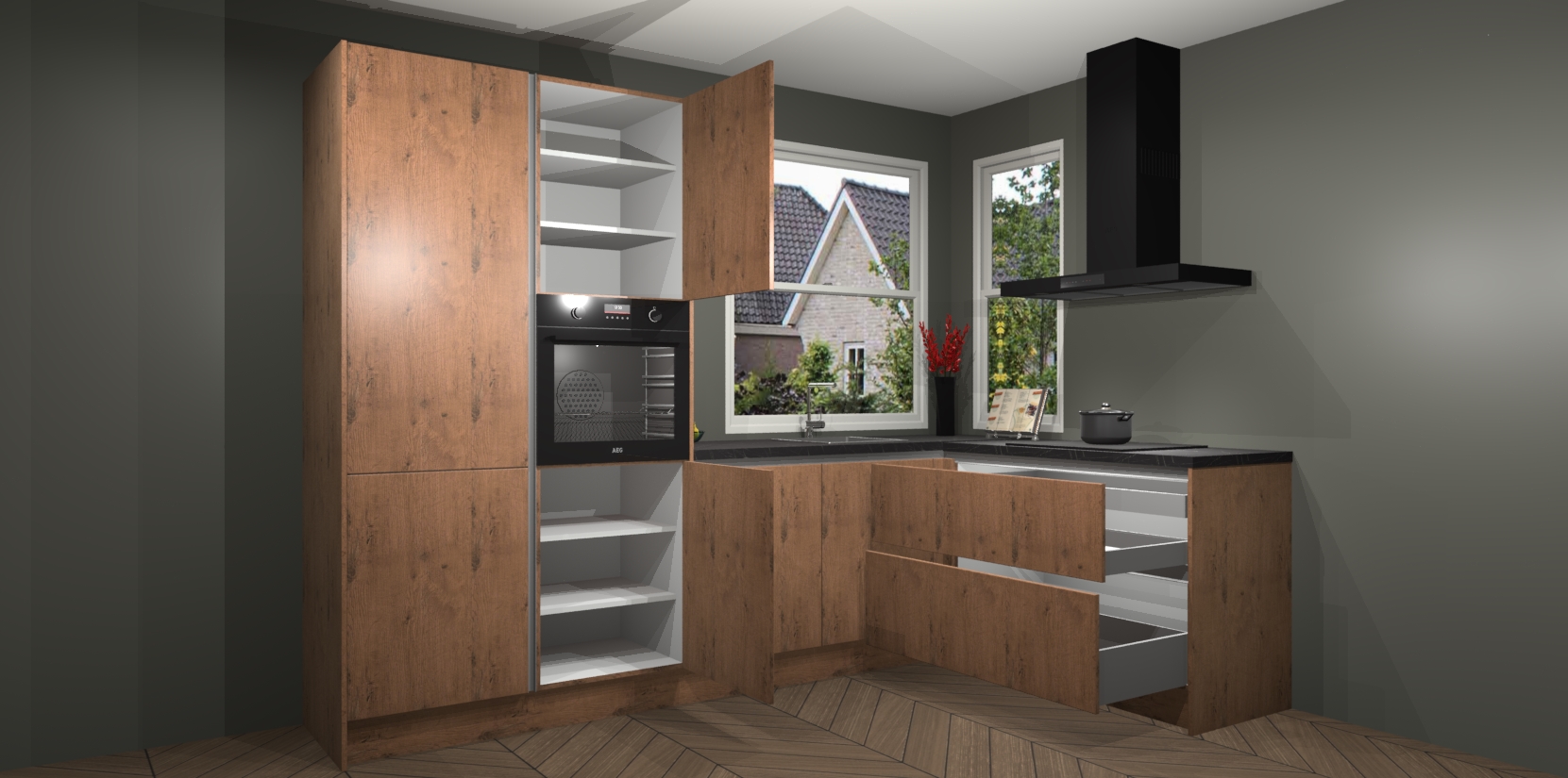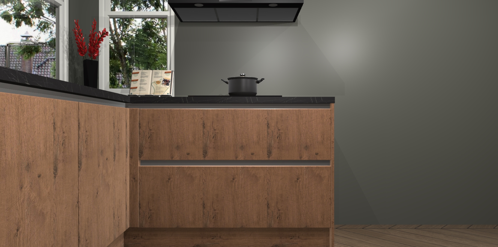 We hebben iets speciaals voor u: de Astoria Eiken greeploze keuken Kotor. Het is een hoekkeuken die sfeer en warmte uitstraalt, en zijn hout-look geeft hem een unieke touch. Perfect voor elk huis!