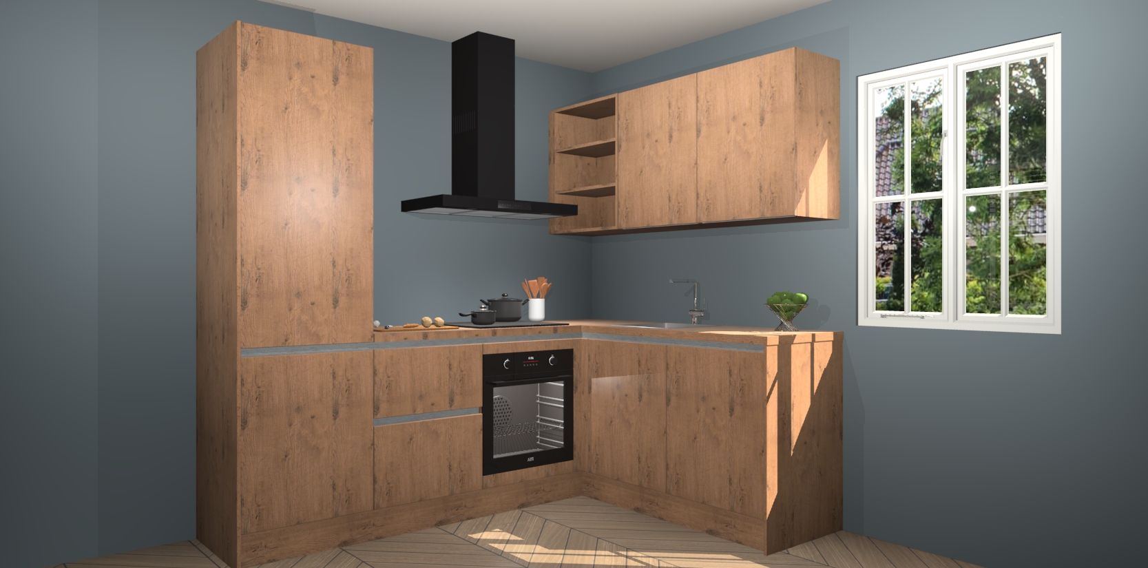 Inclusief plinten, stelpoten en werkblad