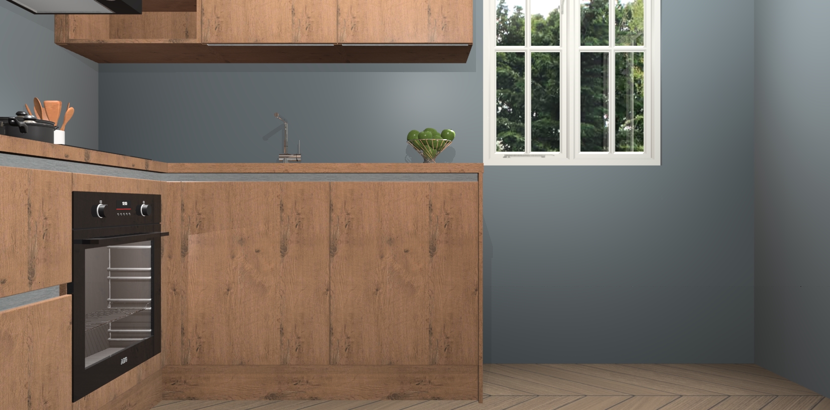 Dit model biedt u voldoende opbergruimte en vijf ingebouwde apparaten: een oven, inductiekookplaat, afzuigkap, vaatwasser en koelkast. Deze apparaten kunnen gemakkelijk worden geüpgrade naar AEG nadat u besteld heeft. De verschillende laden en kastjes bevatten softclose-deuren waardoor ze gezellig dichtvallen met een geruststellend helemaal geruisloos geluid. En dat is nog niet alles! We garanderen ook dat de prijs altijd laag blijft - dus haal nu uw Astoria Eiken greeploze keuken Krakau terwijl het kan.