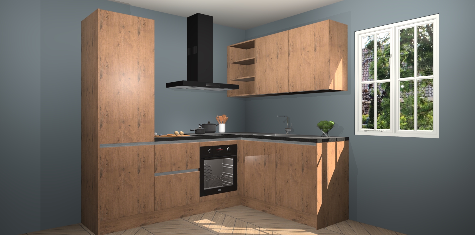 Dit model biedt u voldoende opbergruimte en vijf ingebouwde apparaten: een oven, inductiekookplaat, afzuigkap, vaatwasser en koelkast. Deze apparaten kunnen gemakkelijk worden geüpgrade naar AEG nadat u besteld heeft. De verschillende laden en kastjes bevatten softclose-deuren waardoor ze gezellig dichtvallen met een geruststellend helemaal geruisloos geluid. En dat is nog niet alles! We garanderen ook dat de prijs altijd laag blijft - dus haal nu uw Astoria Eiken greeploze keuken Krakau terwijl het kan.