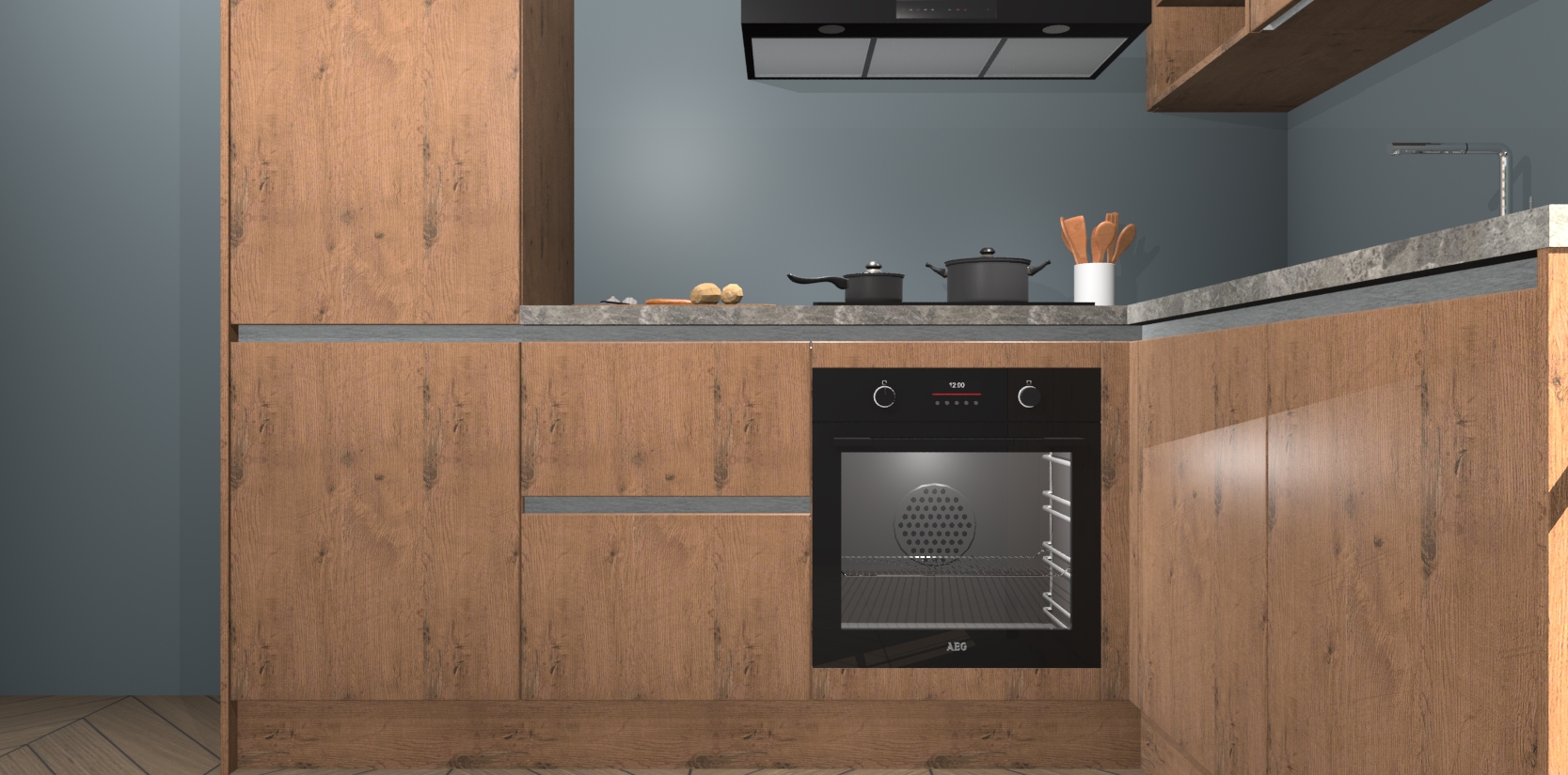 Inclusief plinten, stelpoten en werkblad