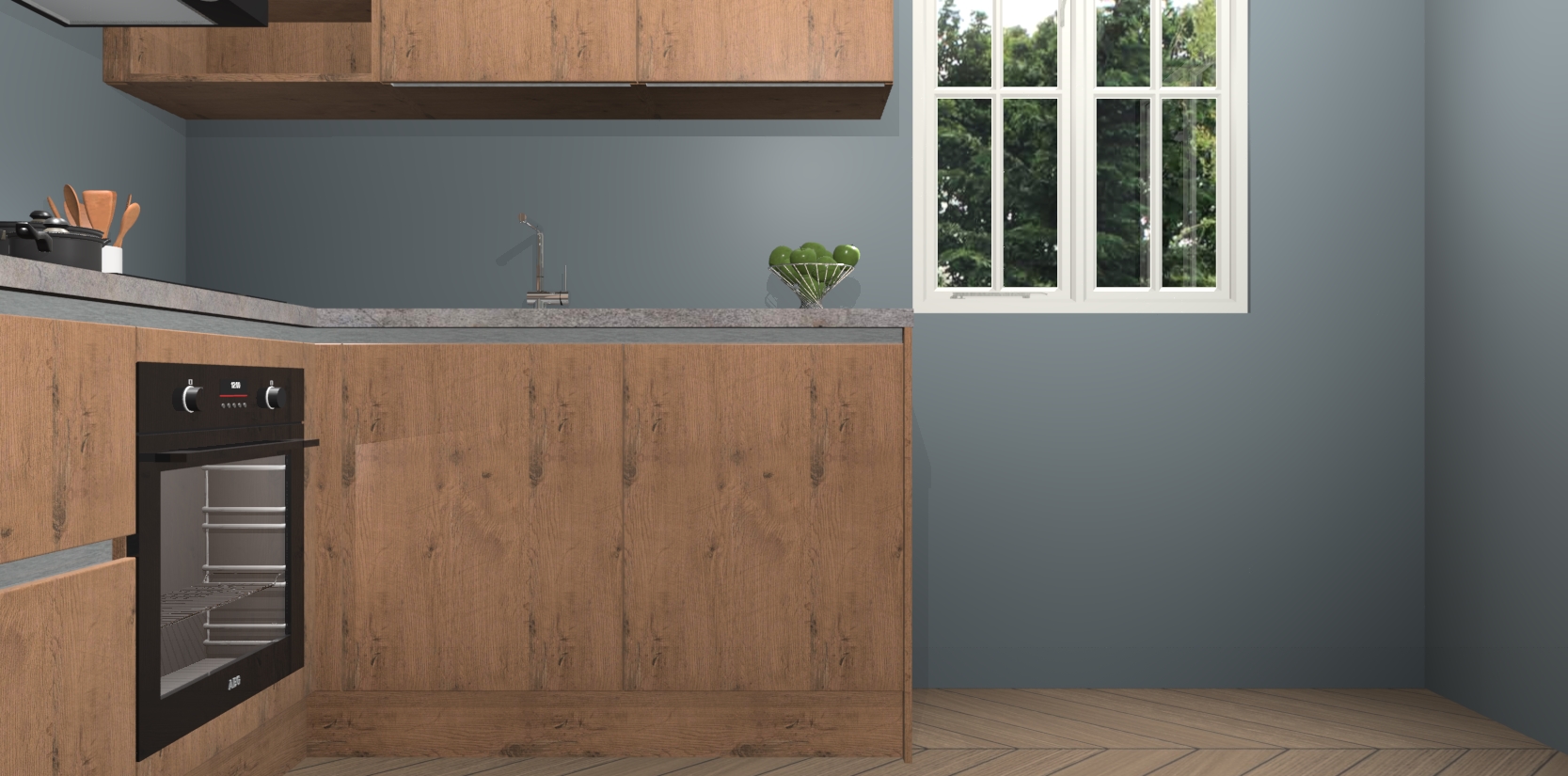 Dit model biedt u voldoende opbergruimte en vijf ingebouwde apparaten: een oven, inductiekookplaat, afzuigkap, vaatwasser en koelkast. Deze apparaten kunnen gemakkelijk worden geüpgrade naar AEG nadat u besteld heeft. De verschillende laden en kastjes bevatten softclose-deuren waardoor ze gezellig dichtvallen met een geruststellend helemaal geruisloos geluid. En dat is nog niet alles! We garanderen ook dat de prijs altijd laag blijft - dus haal nu uw Astoria Eiken greeploze keuken Krakau terwijl het kan.