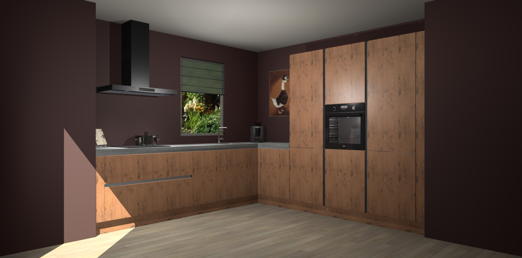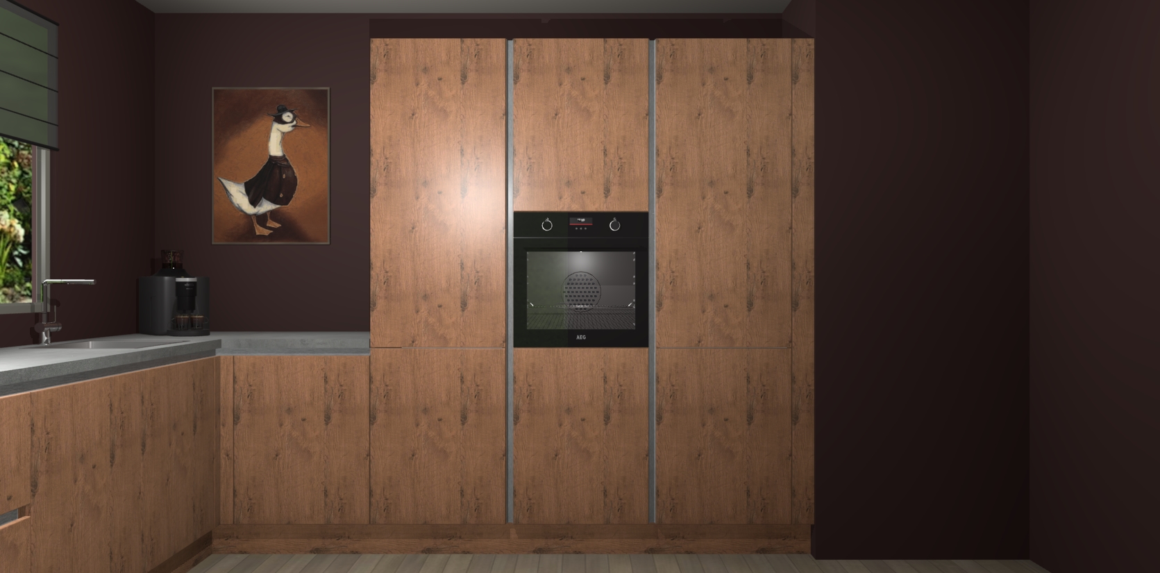 Welkom bij de Astoria Eiken greeploze keuken Laos. Deze prachtige keuken zal de komende jaren het middelpunt van de belangstelling in uw huis zijn. Uitgerust met vijf inbouwapparaten komt u nooit kookgereedschap tekort. Bovendien geeft de warme houtlook elke ruimte een uitnodigende en tijdloze uitstraling.