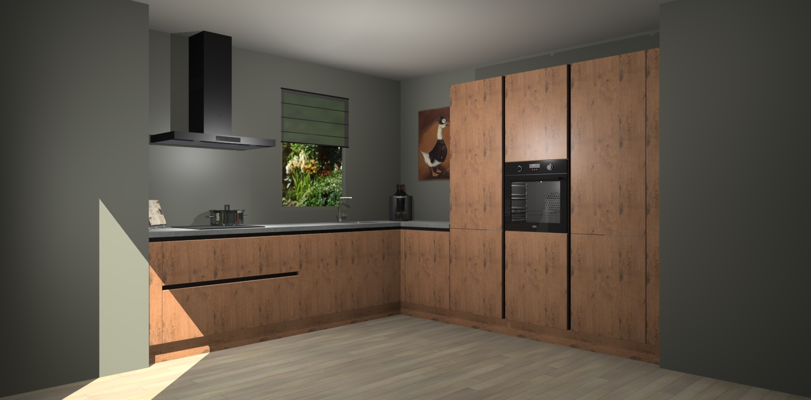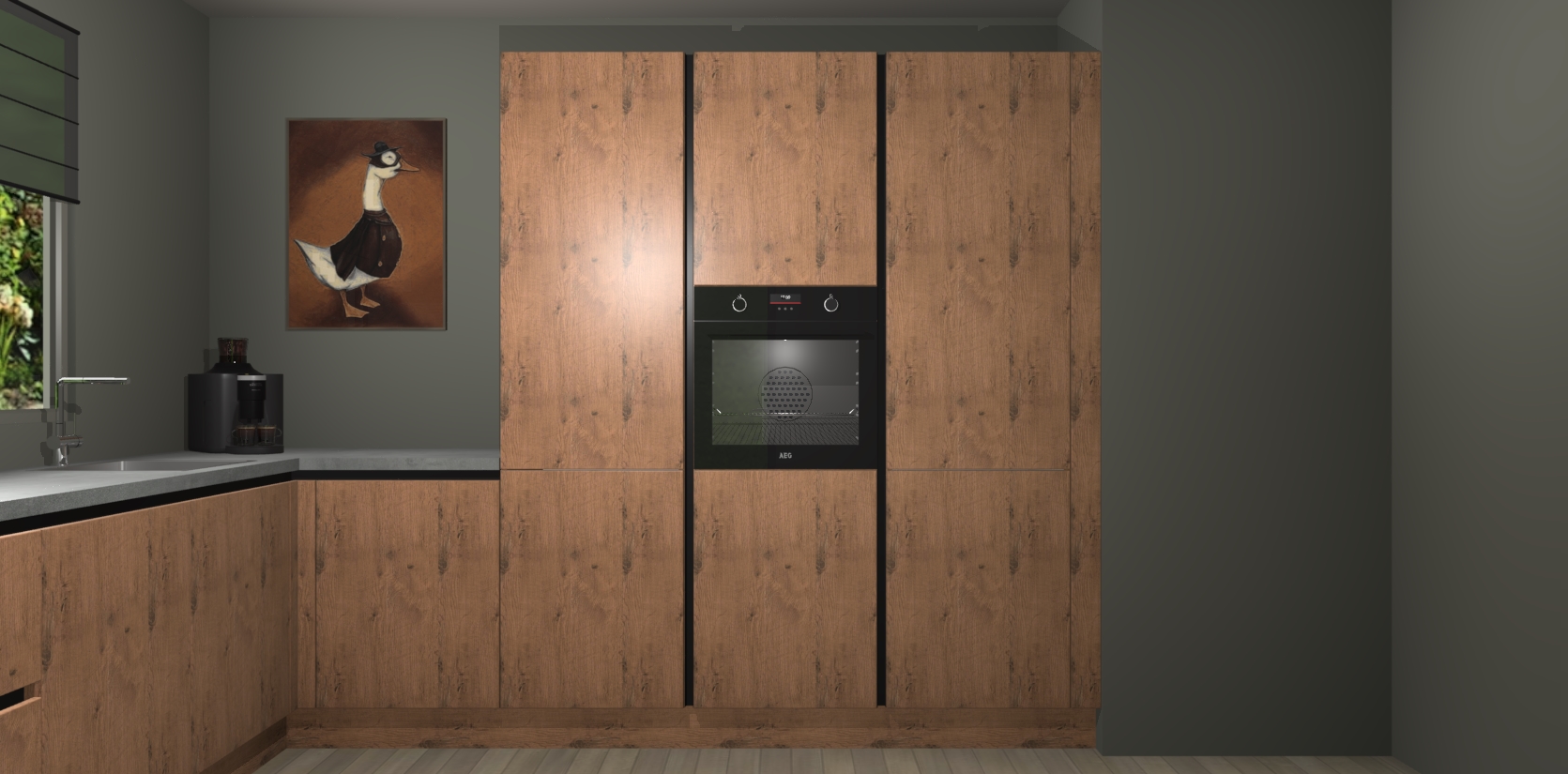 Welkom bij de Astoria Eiken greeploze keuken Laos. Deze prachtige keuken zal de komende jaren het middelpunt van de belangstelling in uw huis zijn. Uitgerust met vijf inbouwapparaten komt u nooit kookgereedschap tekort. Bovendien geeft de warme houtlook elke ruimte een uitnodigende en tijdloze uitstraling.
